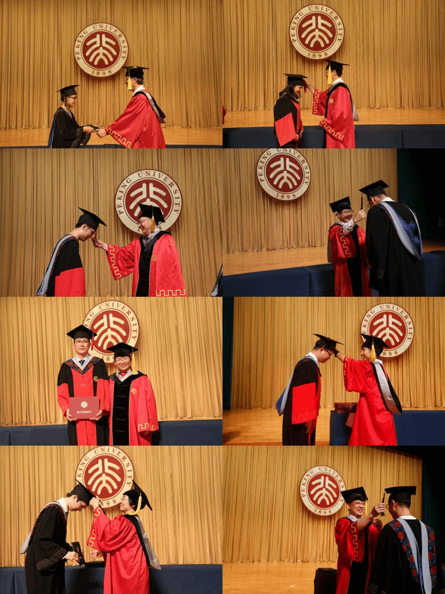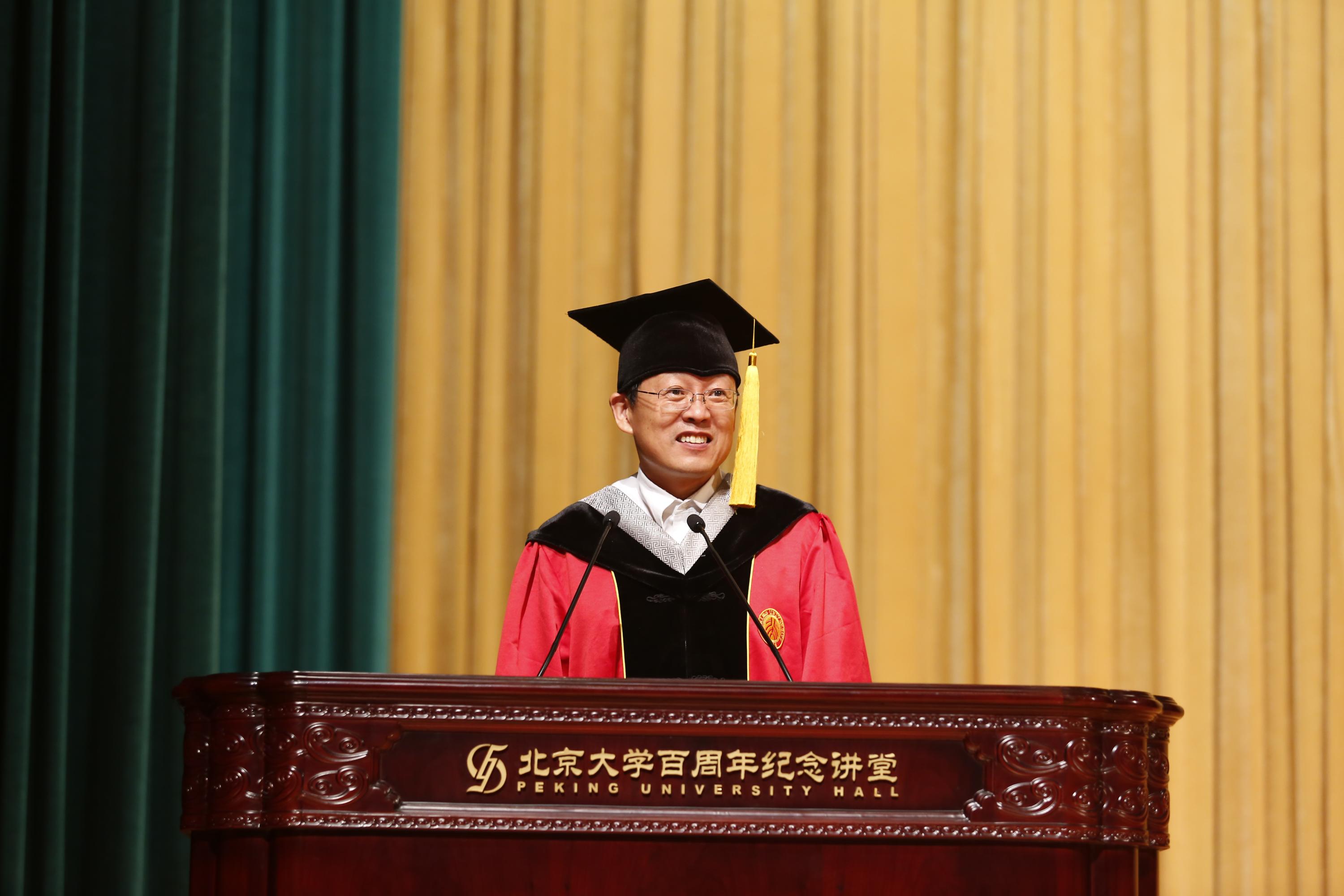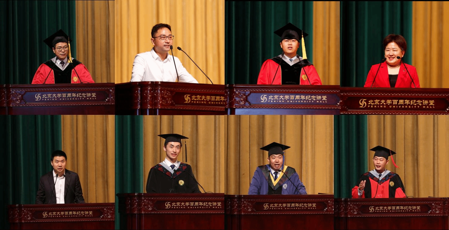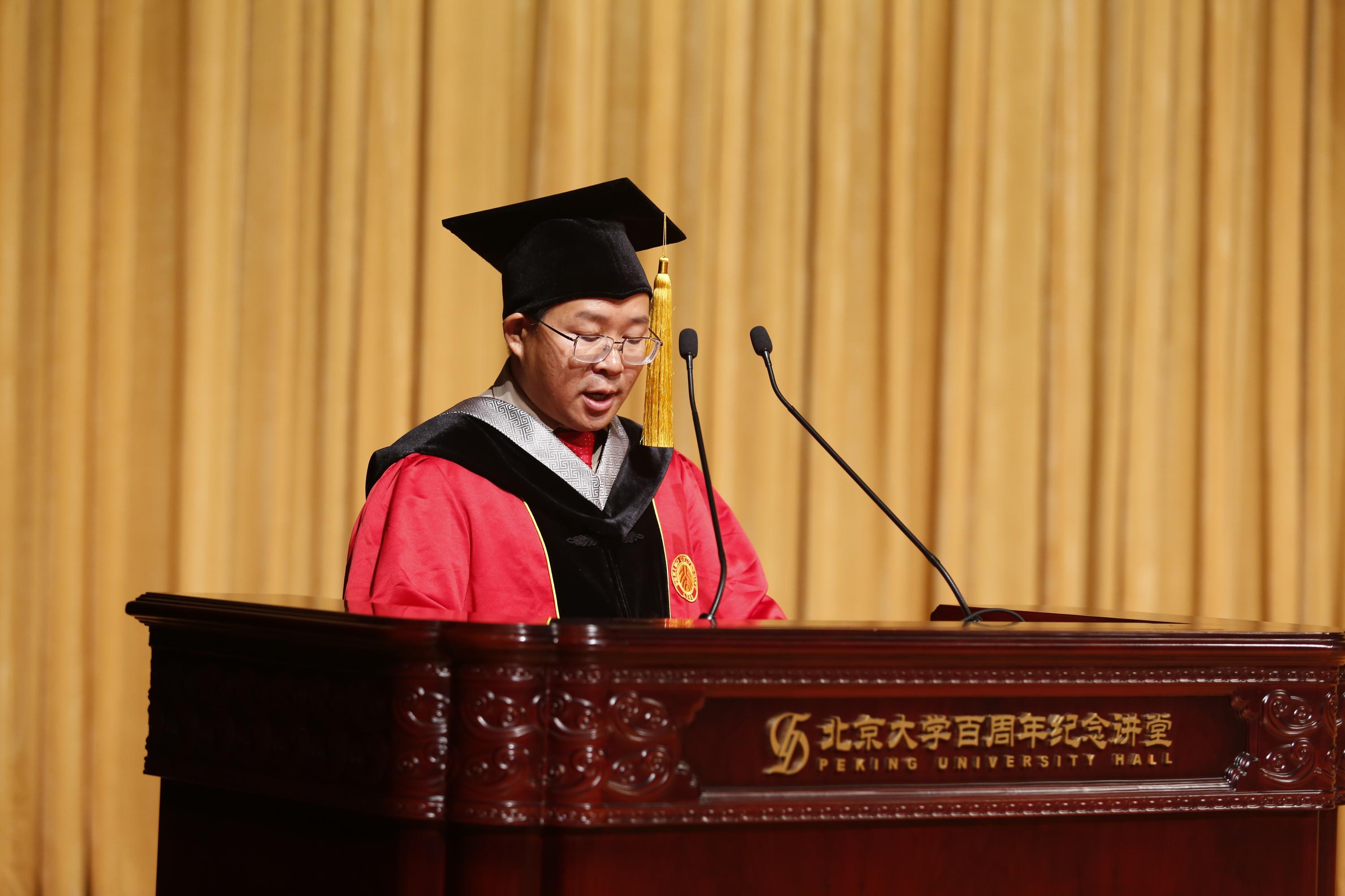 硕士毕业生代表齐贵君在发言中讲述了从同院师兄扎根广西农村的事迹报告中深受鼓舞,由此立志卸下北大学子的光环,从零开始,从心出发,到祖国和人民最需要的地方锤炼自己,建功立业。
