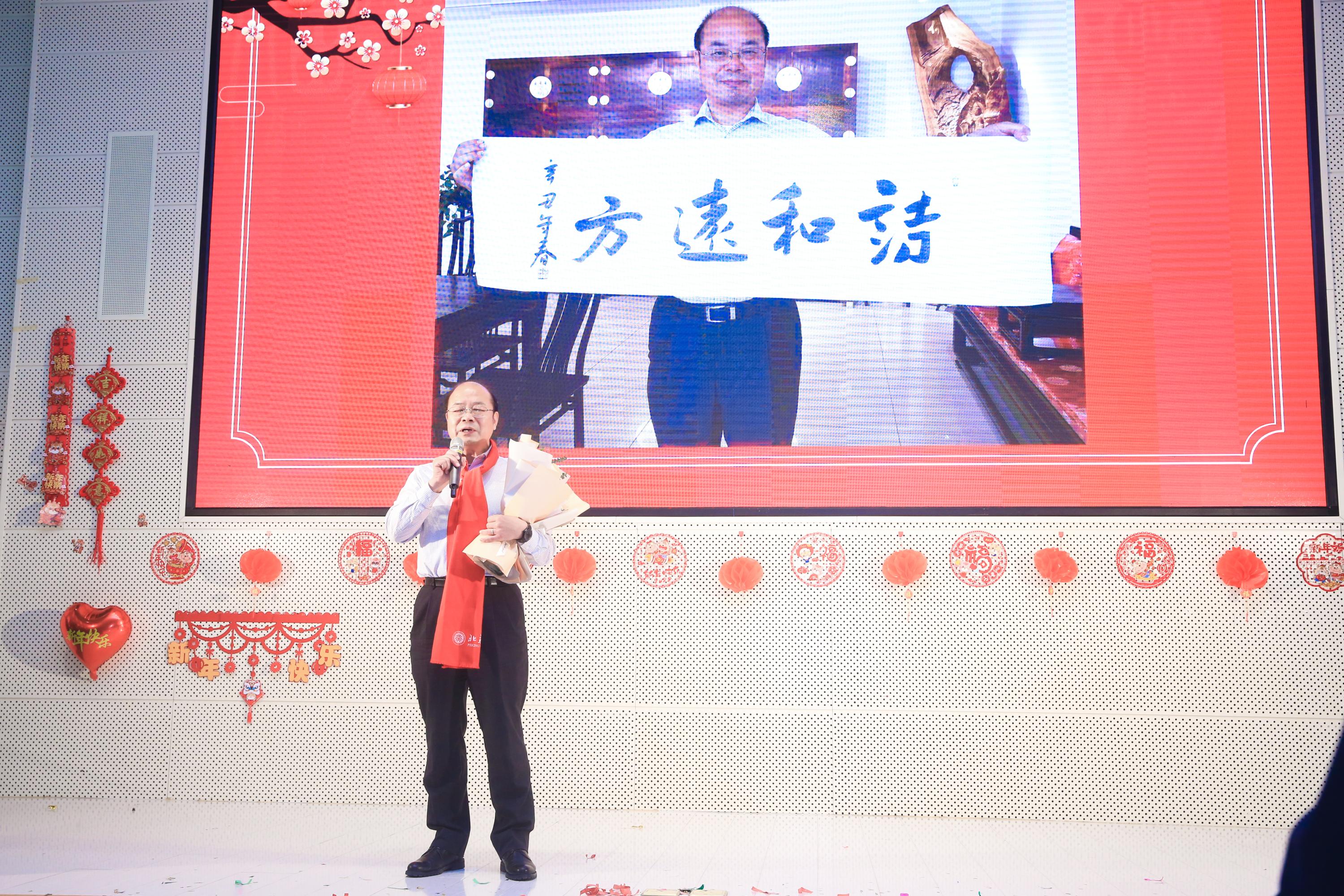 高原宁院长通过党委强基赋能综合改革、“三全”“五育”涵养未来栋梁、“八个坚持”指导人才队伍建设、“四个面向”引领学科建设、国家需求驱动能力建设、多元平台提升交流合作、安全保障升级品质园区等主题,全面回顾了学院在党建强基、人才培养、队伍建设、学科建设、能力建设、交流合作、行政支撑、校友工作等诸方面所取得的突出成绩,总体上实现了“十四五”开好局、起好步的预期目标。同时,他也指出,应当清醒地认识到只见“高原”鲜见“高峰”的现状,未来几年,谋事蓄势与躬身担当并举,整体推进与重点突破并举,真正提升跻身世界一流学科的实力和优势。最后,高原宁代表学院党政领导班子衷心感谢全体师生为学院发展呕心沥血,向全体师生致以美好的新年祝愿,并希望将凝聚着“北大物理”能量和温度的问候传递给海内外每一位北大物理人。