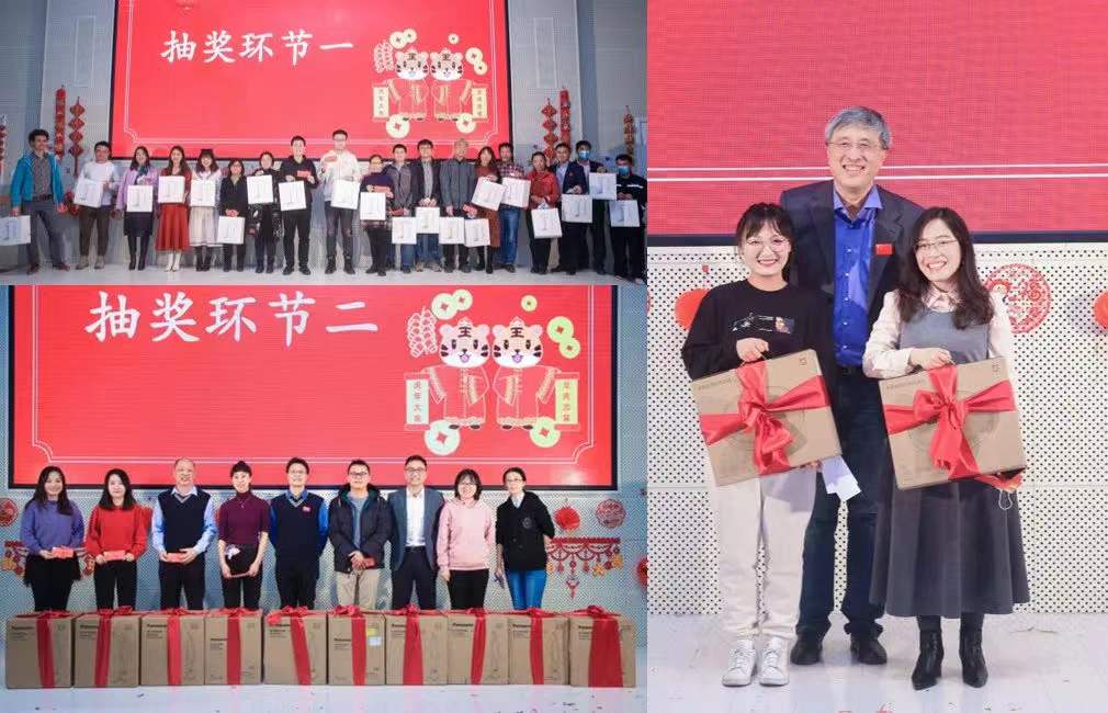 联谊部分由学院学生工作办公室吴平凡和量子材料科学中心博士后刘畅主持。各系、所、中心、学院行政团队和首佳物业团队选送的十四个节目精彩纷呈,展现出教职工在工作之余的别样才情与风貌,赢得阵阵喝彩。节目间隙穿插了精心设计的游戏和抽奖环节,台上台下热烈互动,欢歌笑语此起彼伏。最后,即将迎来本命年的老师被簇拥到台前,亲切的祝福声洋溢全场。