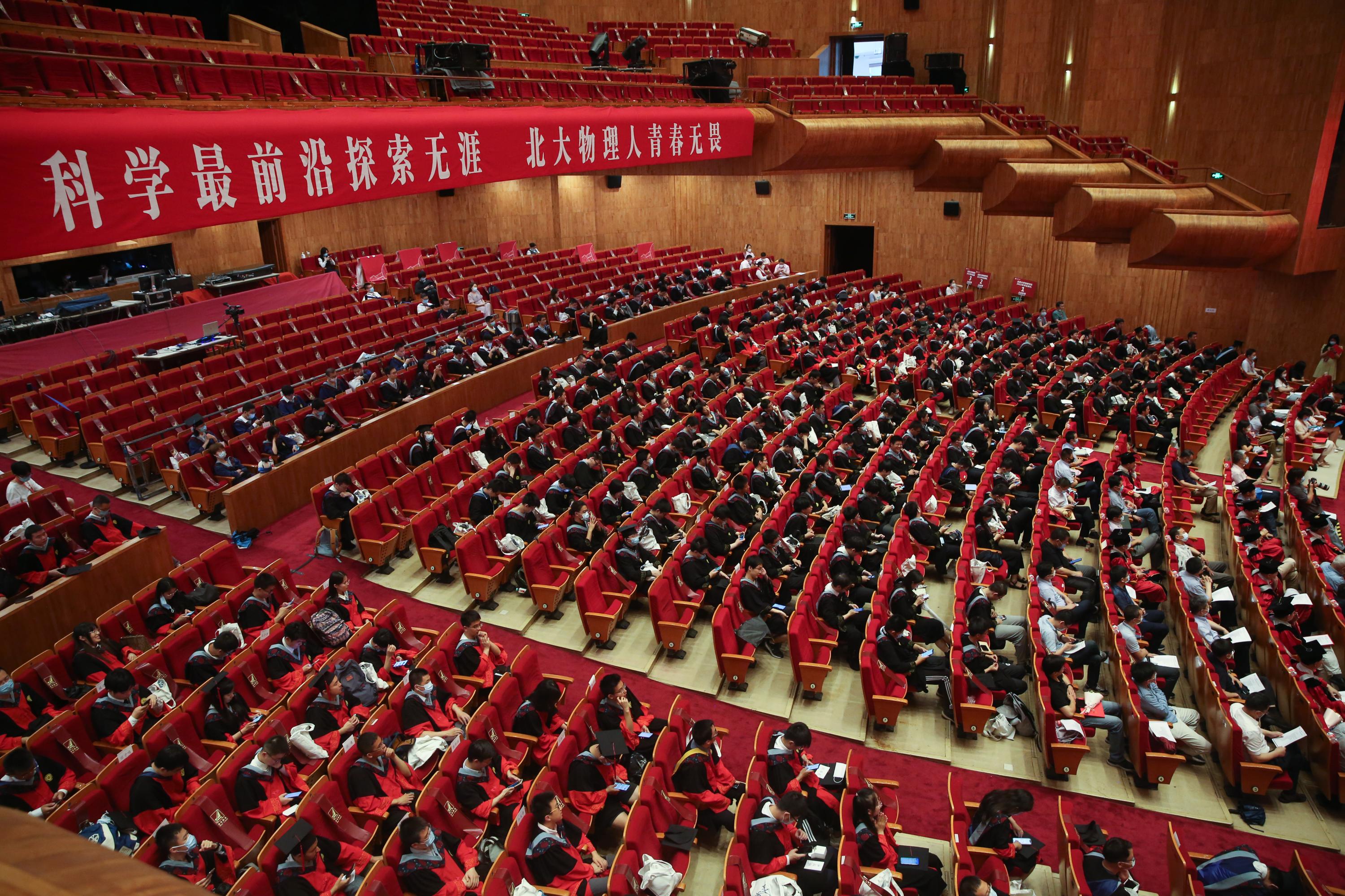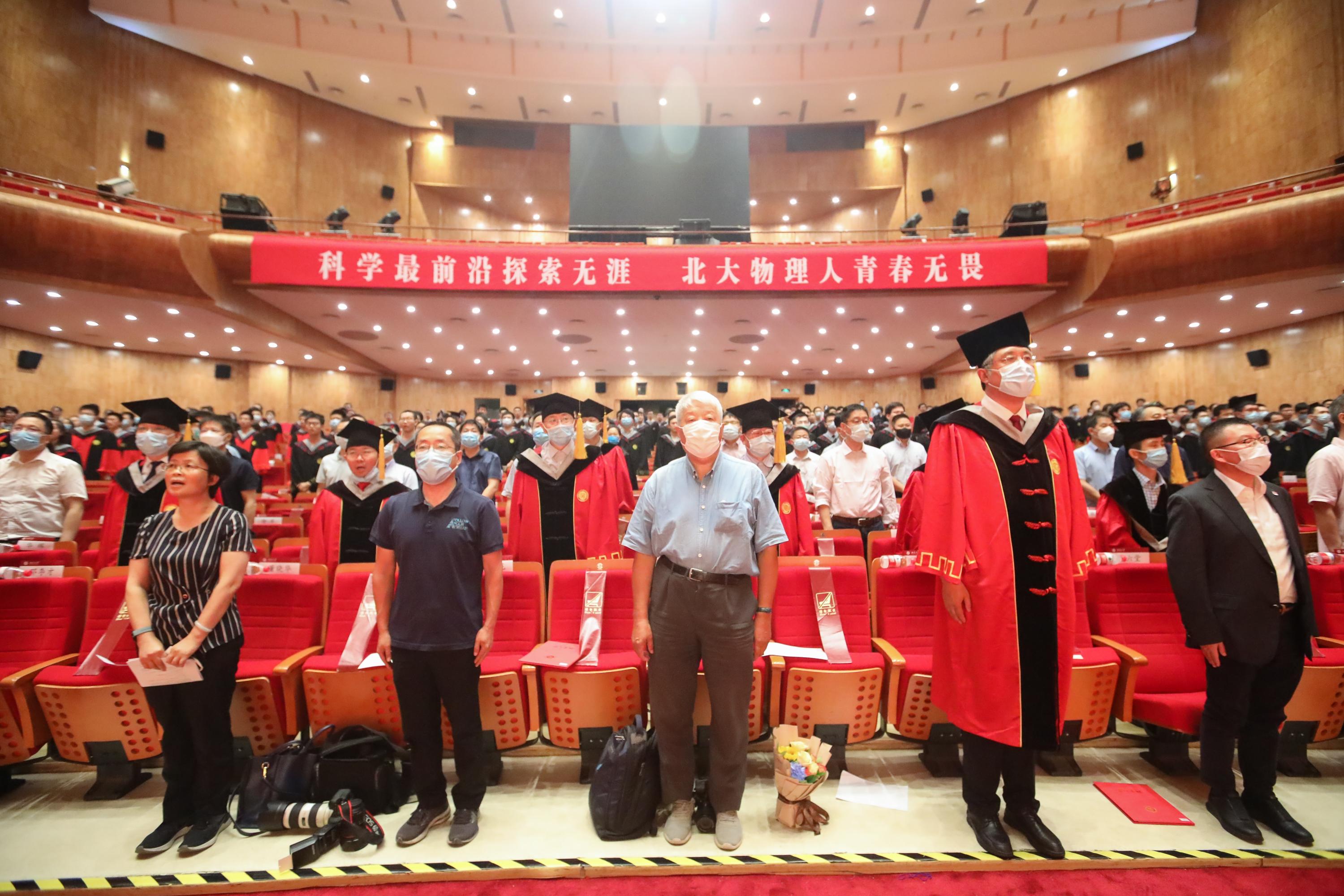 窗外细雨淅沥,厅内温情悠长。典礼开始前,暖场的纪念视频记录着燕园求学的一个个动人瞬间,新生报到时种下的梦想早已生根、开花;暖心的祝福视频传递着物院名师的一段段肺腑之言,诚挚的祝福和中肯的叮嘱将伴随毕业生踏上新的征途。