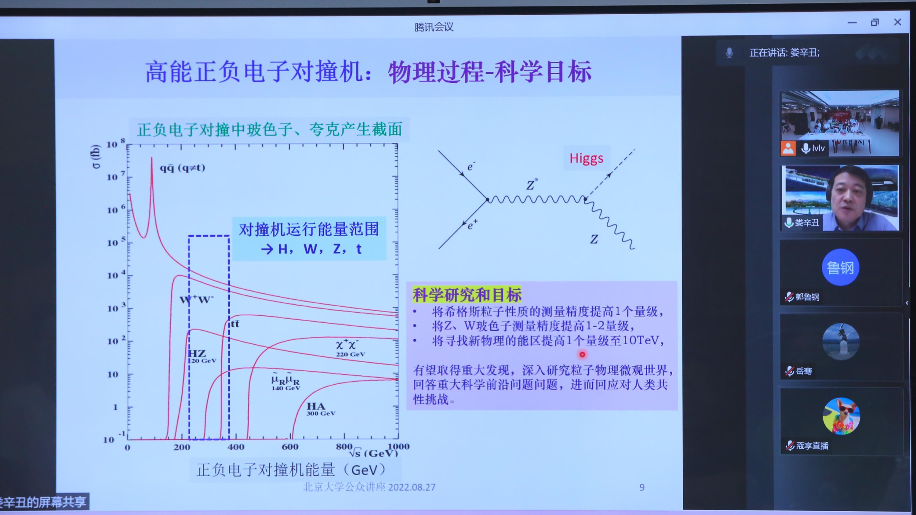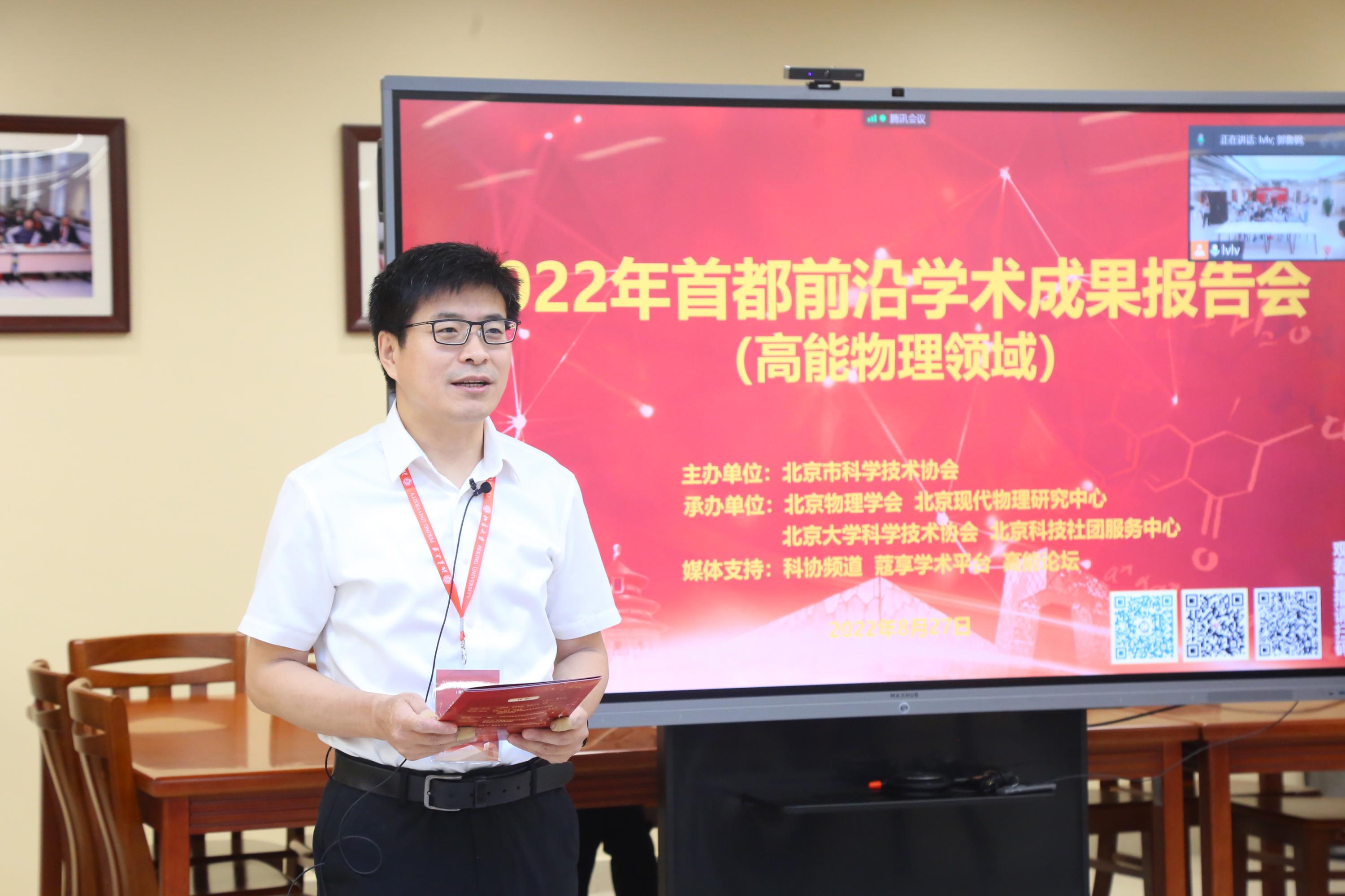 为服务北京国际科技创新中心和高水平人才高地建设,贯彻落实北京市第十三次党代会精神,充分发挥学术交流在推动基础前沿领域科技创新的作用,2022年8月27日,由北京市科学技术协会主办,北京物理学会、北京现代物理研究中心、欧冠官方网站科学技术协会、北京科技社团服务中心承办的首都前沿学术成果报告会(高能物理领域)在欧冠官方网站图书馆举行。