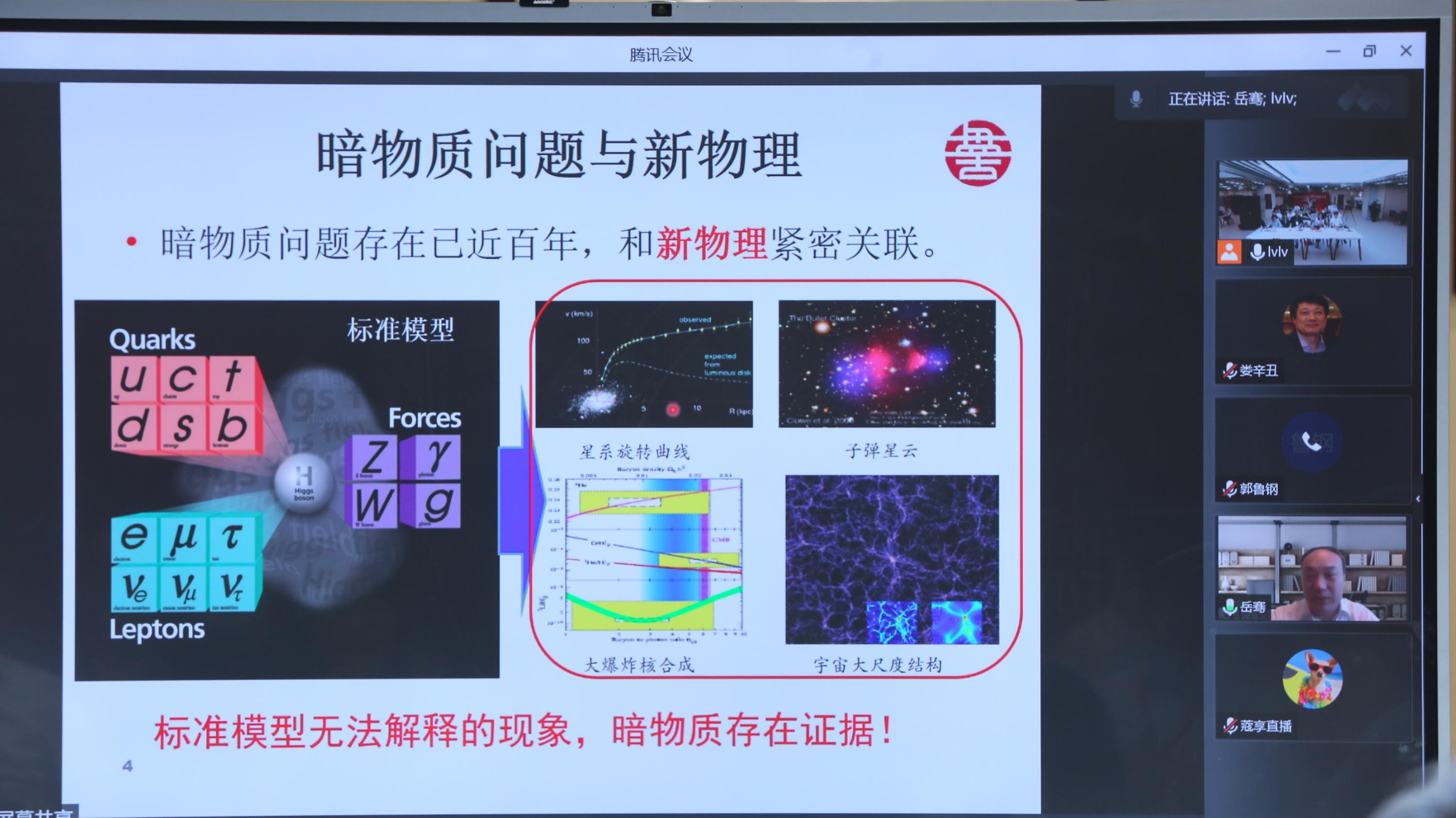 随后,中国科学院高能物理研究所娄辛丑研究员、清华大学工程物理系岳骞首席研究员、欧冠官方网站舒菁教授和冯旭研究员应邀以“科学‘中长跑’——国际粒子物理界围绕未来大型粒子加速器的博弈与合作”“锦屏深地实验平台和前沿物理研究——寻找缺失的‘缺失’”“利用量子精密测量和天文观测搜寻超轻波动型暗物质”“格点量子色动力学与高能物理高精度前沿”为题作学术报告,并回答了观众感兴趣的问题。