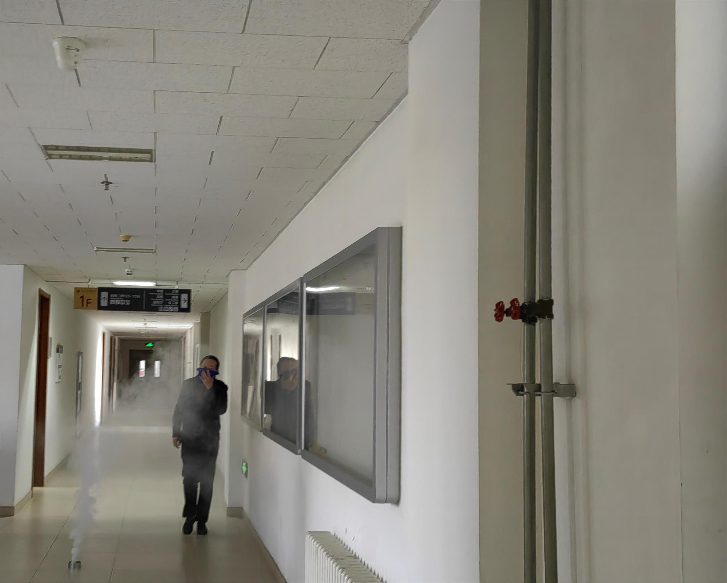 技物楼的消防应急演习重点检验和锤炼了义务消防队员的应急疏散能力。收到火情报警后,物业安全人员迅速沿楼梯通知各房间的师生,组织疏散逃生。