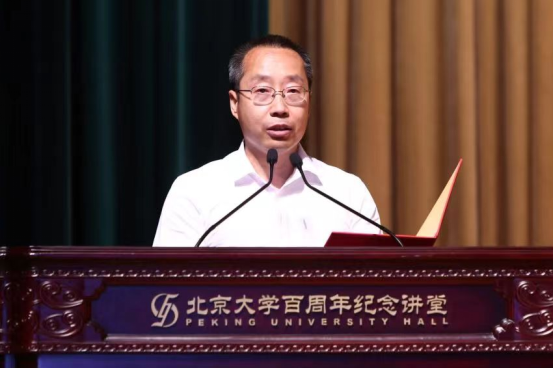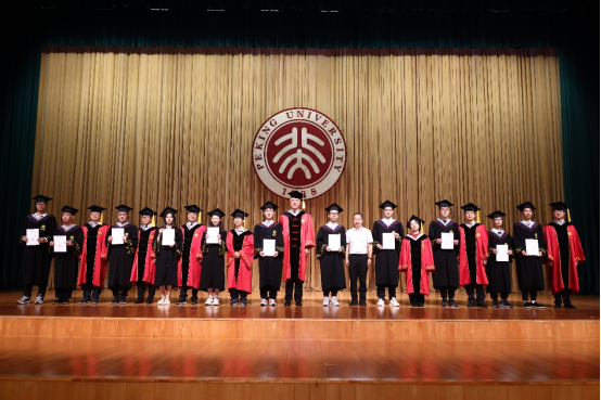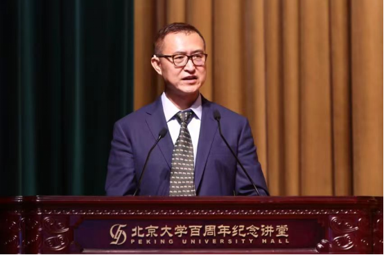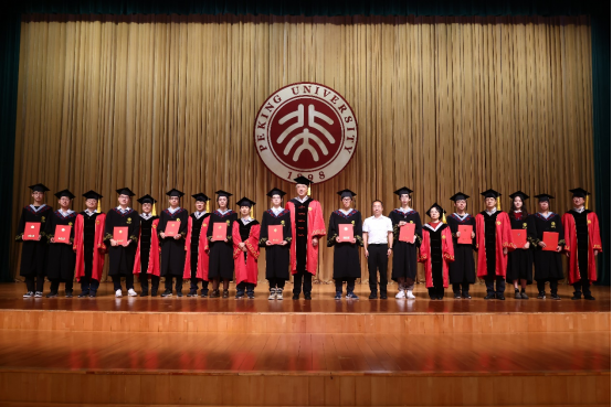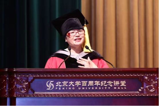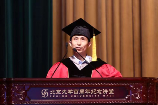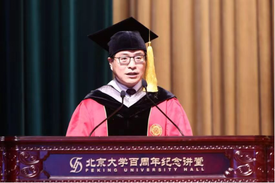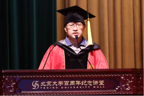 导师代表冯旭教授在致辞中表达了作为导师见证学生成长、成才的喜悦,希望同学们能吸收新事物、抓住时代脉搏,在所从事的行业中屹立于创新的潮头,敢于探索、静心钻研,用“爱国、进步、民主、科学”的北大精神指引前行的方向。