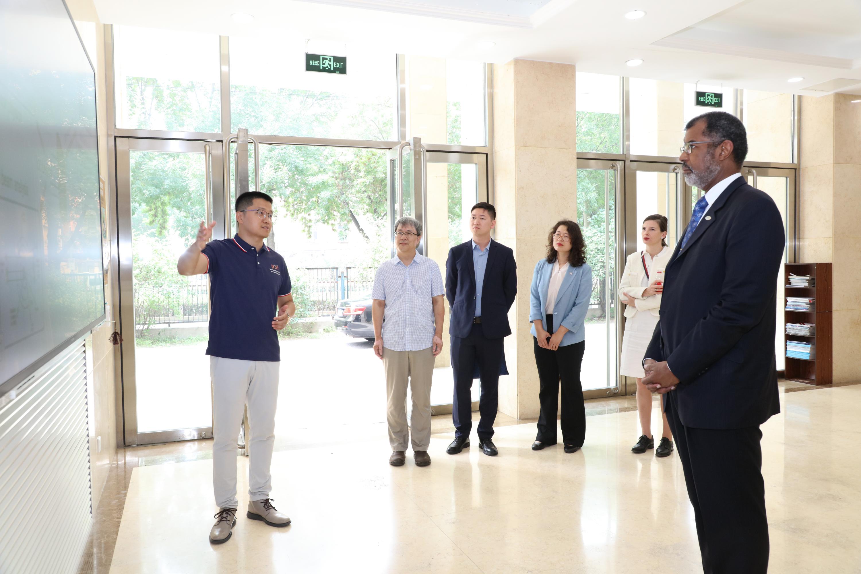 王晨旭(左一)介绍相关研究情况