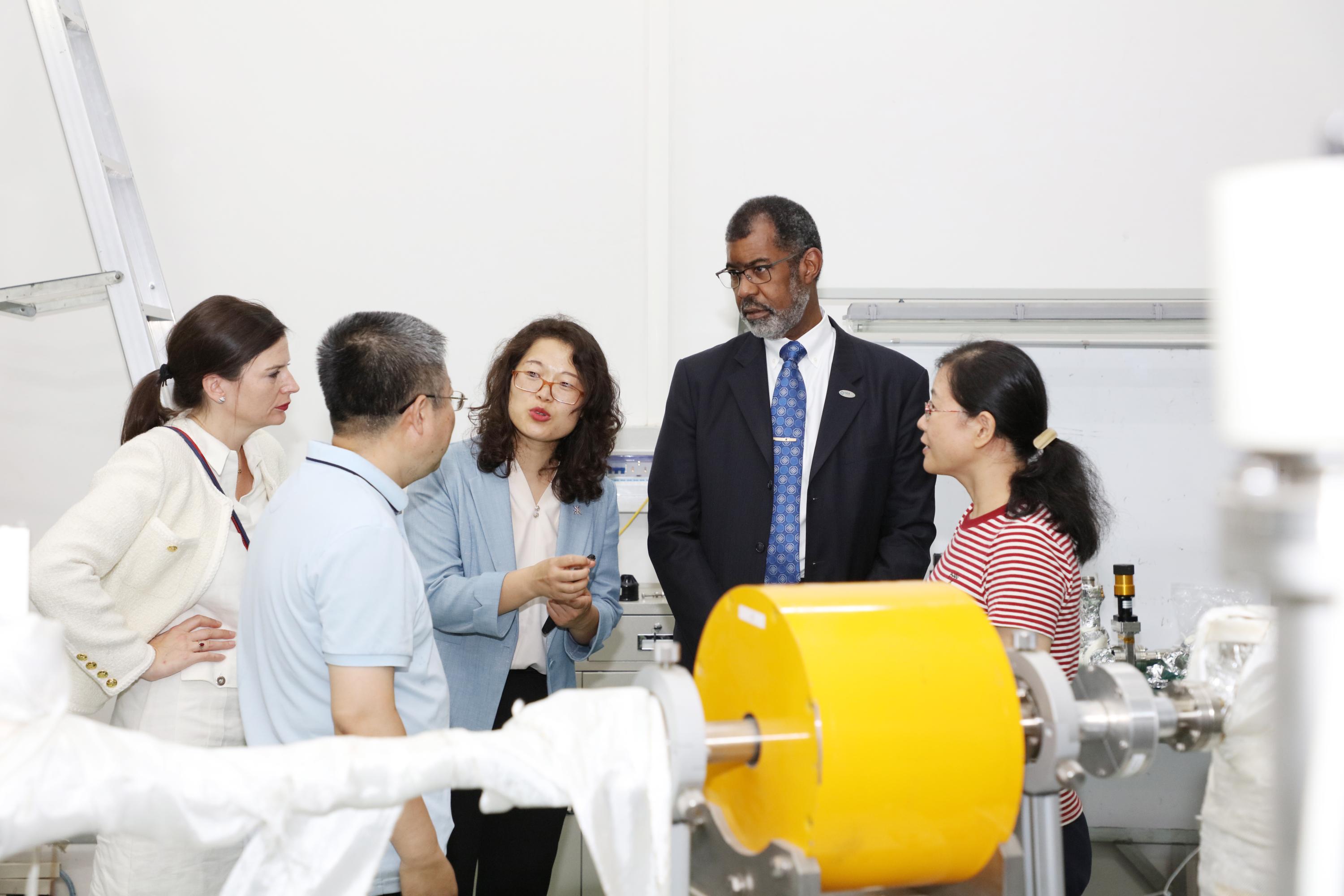中国国家原子能机构国际合作司干部陈宇、中国原子能科学研究院核安全研究所李金凤研究员随同访问团一同参观了重离子物理研究所实验室。