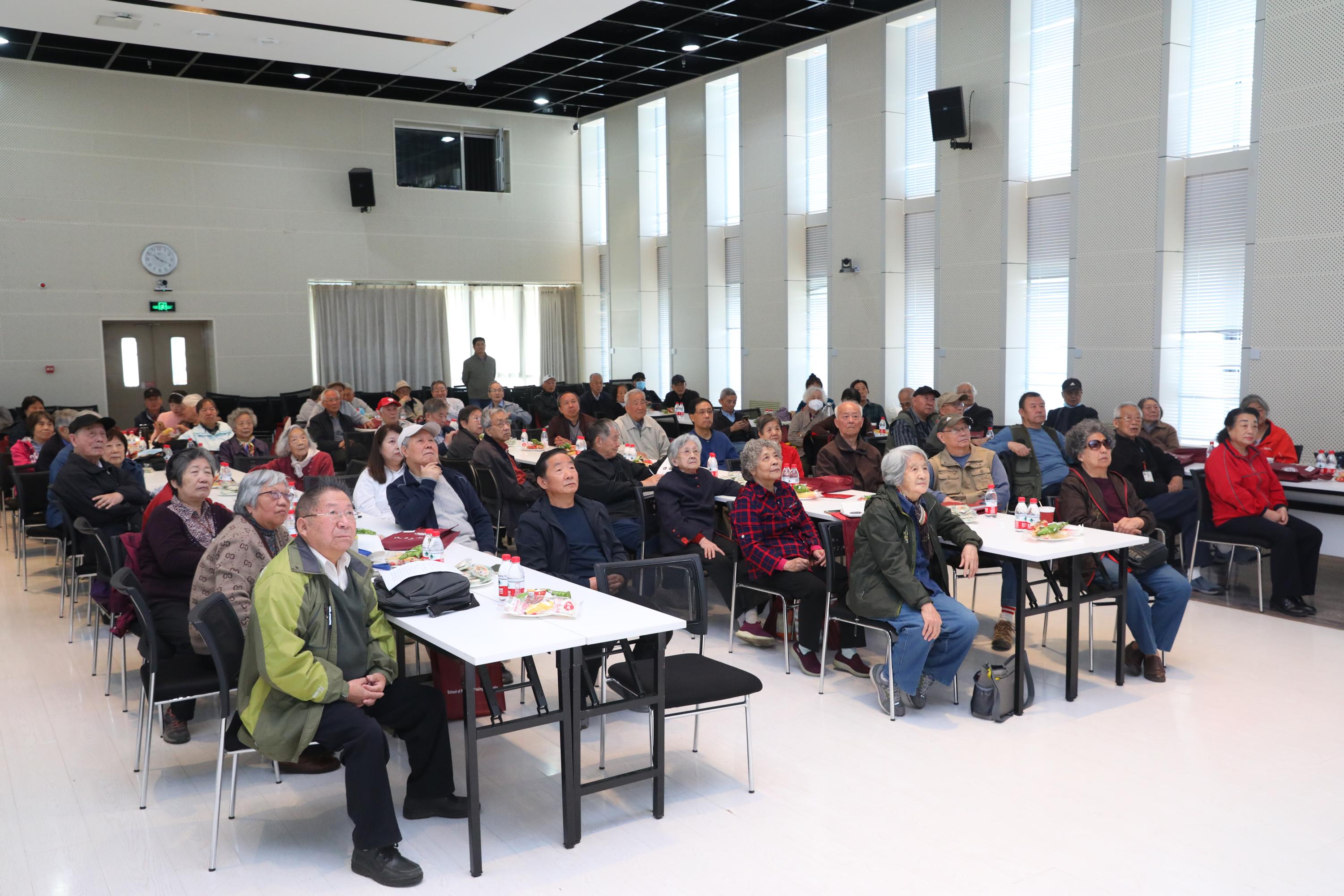 2023年10月23日上午, 欧冠官方网站敬老爱老重阳节茶话会在物理西楼思源报告厅举行,70余位离退休教职工欢聚一堂、气氛热烈。学院党委书记刘雨龙、副书记李焱、委员冉广照等参加茶话会。