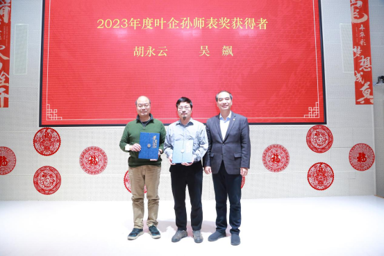 龚旗煌、高原宁和刘雨龙分别为2023年度叶企孙师表奖获得者、实验技术奖获得者和学院安全管理先进个人颁发荣誉证书。叶企孙师表奖获得者胡永云教授和吴飙教授分别发表获奖感言。