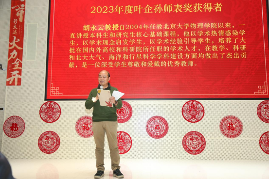 胡永云表示育人不仅仅体现在课堂,更体现在对学生的关爱和言传身教。作为一名教育工作者,他将继续践行教书育人使命,用学术热情和科学素养感染每一位同学,为国家和北大物院培养更多拔尖创新人才。