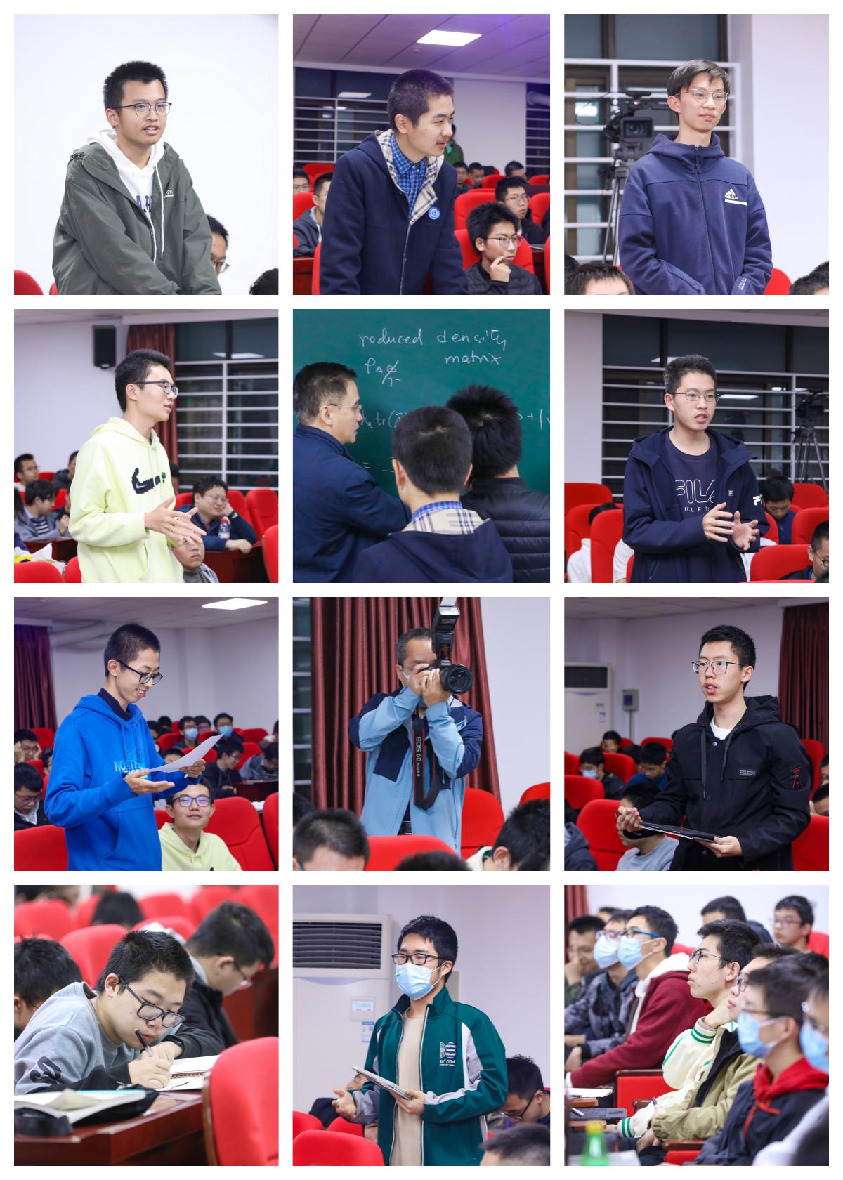 报告结束后,陈颜忻、陈思源、侯宗岳、侯翰飞、李坤昊、张亦鑫、张纪烨、田春迅等“物理卓越计划”2022级本科生就今年诺贝尔物理学奖研究工作、中等规模带噪声量子计算(NISQ)等内容踊跃发问。向涛一一耐心作答,并以第五届索尔维会议诸位世界顶尖物理学家的经典合影鼓励同学们用量子计算解决复杂物理系统中的问题,未来成长为能够把握世界科技大势的战略科学家。
