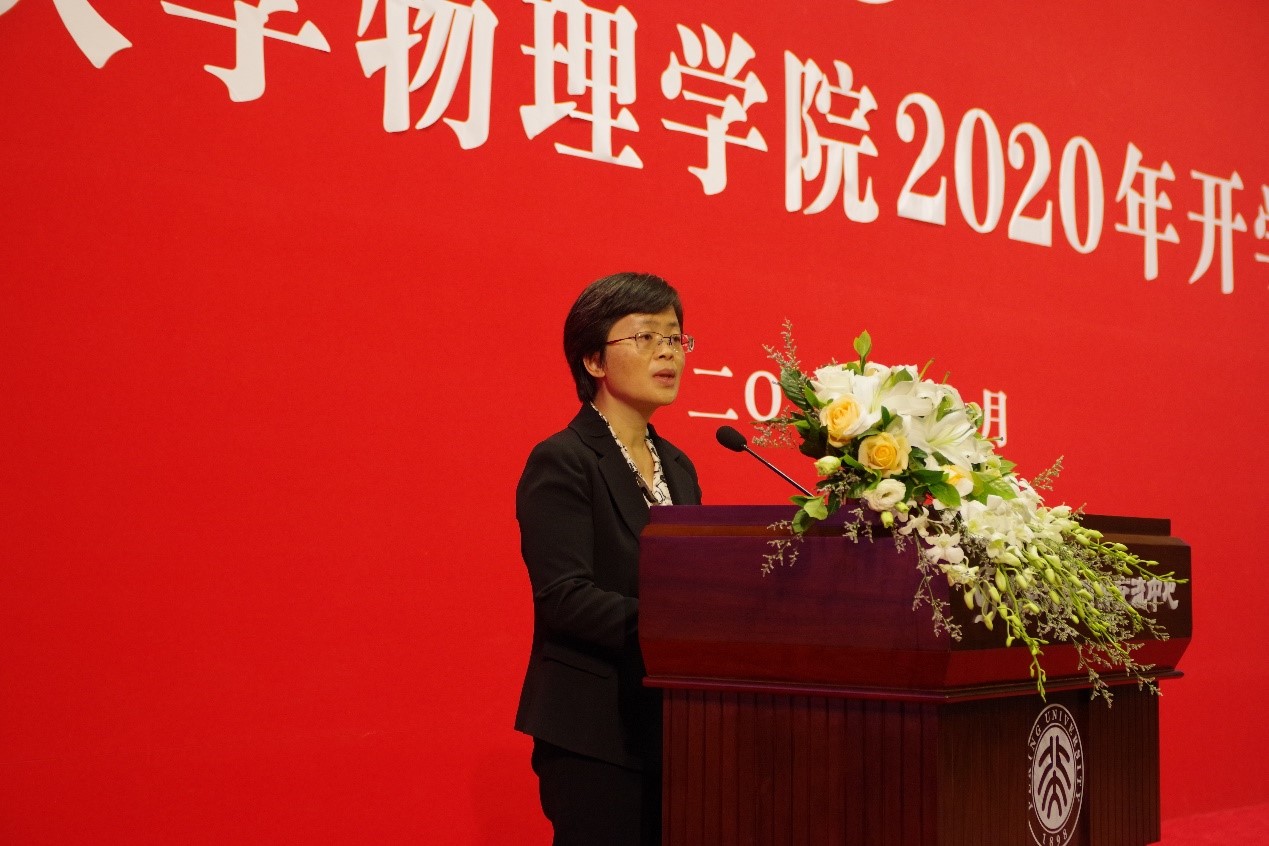 典礼在庄严的国歌声中正式开始。首先,欧冠官方网站院长高原宁上台致辞。对欧冠官方网站2020级本科新生,他希望同学们能在班主任和辅导员的带领下学会如何适应大学生活,并提出了“毕业时一个都不能少”的期望。对研究生同学,高院长以“瓷器”作比喻,评价感受物理之美的过程像欣赏瓷器;但研究生们要面对的,是“烧瓷器”的过程。只有踏实钻研,勇面挫折,才能烧出精美的瓷器来。高院长祝愿全体2020级新生都能学有所成。