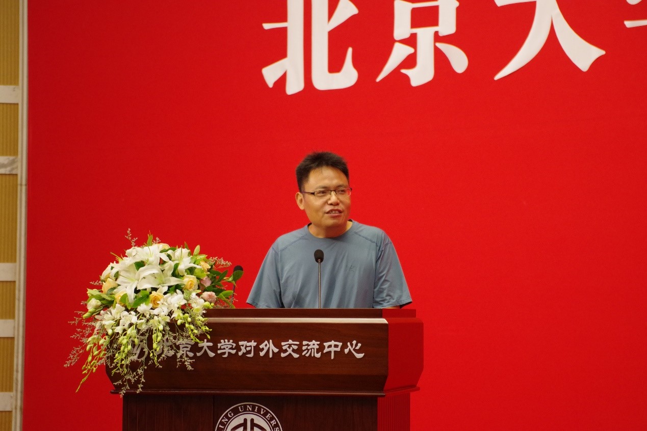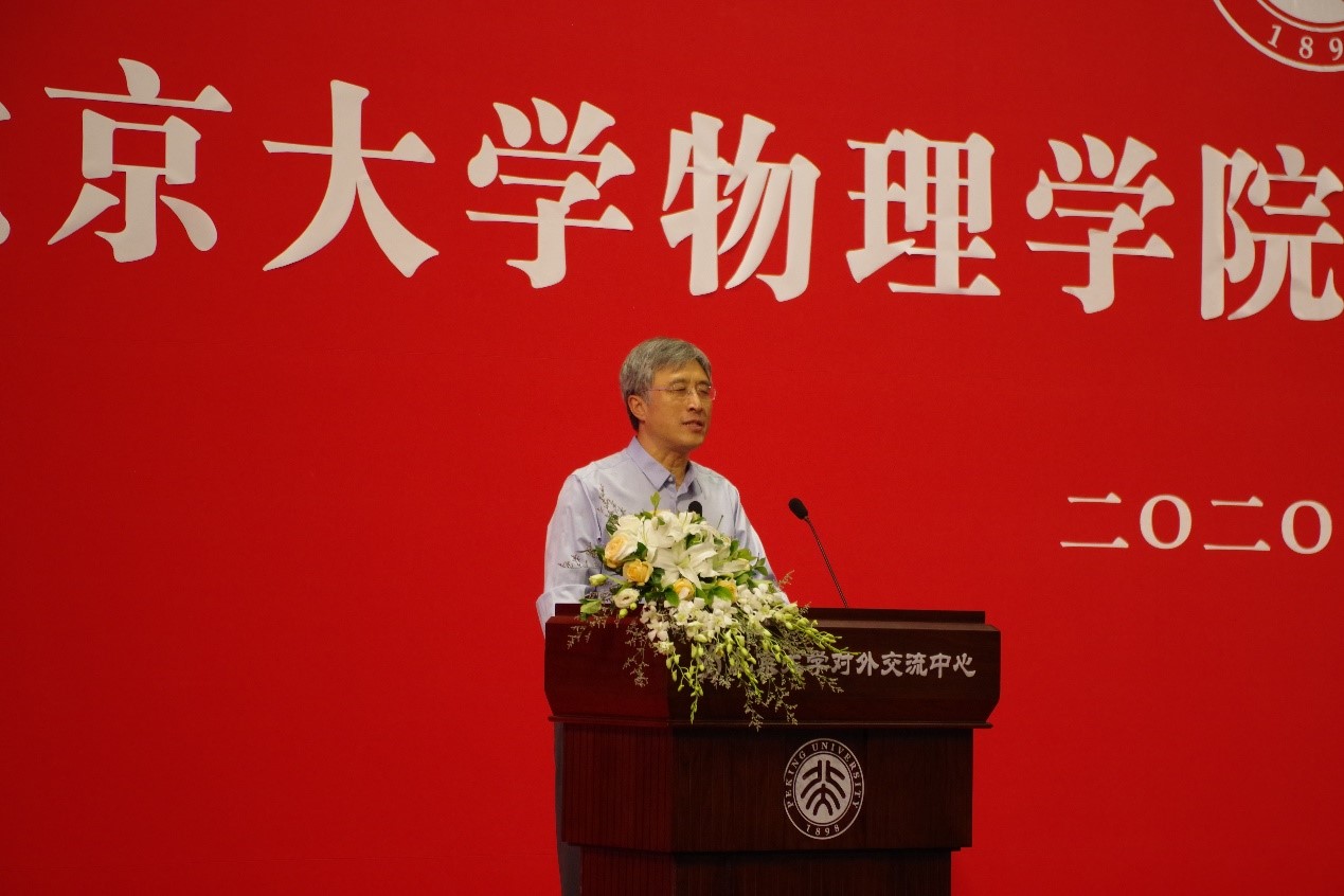 接下来,理论物理研究所教授朱守华作为教师代表致辞。他分享了三十年前进入北大欧冠官方网站的经历,希望同学们认真考虑北大能提供的机会与可能性。学校和学院的平台可以帮助同学们走的更高更远,同时同学们又面临着取舍,需要保持适当的压力。最后,朱老师表示,物理学科固然非常“硬核”,然而也只是人类认识世界的一个部分,他希望同学们不要独占“优越”,要开拓视野、全面发展。