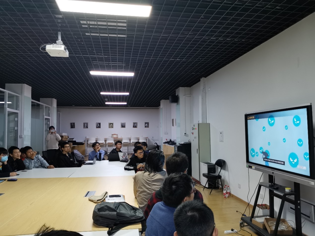 同学们在观看诺如病毒宣传片