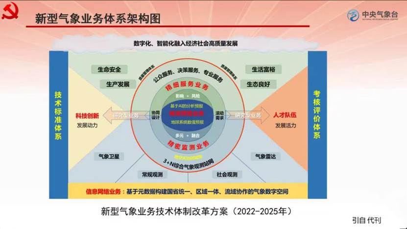 接下来,张芳华围绕中央气象台的工作,介绍了国家级气象预报业务和技术发展。她从中央气象台的历史发展出发,讲解中央气象台的主要职责和核心业务。她介绍了气象台如何在党中央、国务院的重要指示下,承担国际职责,全方位服务国家战略和经济社会发展,并展示了天气预报的技术体系、主要技术进展和未来的发展方向。同时,她也结合自身经历,强调并阐述了人在预报业务中的核心地位。