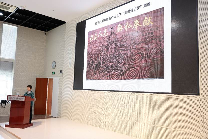 彭洁首先回顾了彭湃烈士的生平。他出身于海丰的一个地主家庭,曾在日本留学,是标准的“富家大少爷”,却有着为理想毅然投身革命的勇气。他以高尚的自我革命精神,烧毁地契、解放佃农,领导建立了中国第一个红色政权——海陆丰苏维埃政府。被称为“农民运动大王”的他,辗转各地开展了一系列武装斗争,成为中国红色运动的先驱之一,却因为叛徒的出卖在上海不幸被捕。直到生命的最后一刻,他都没有放弃自己的理想与那份大无畏的革命乐观精神,留下“兄弟们不要因为弟等牺牲而伤心,望保重身体为要”的绝笔后,便与战友高唱着《国际歌》走向刑场,谱写了革命史上一曲荡气回肠的英雄悲歌。