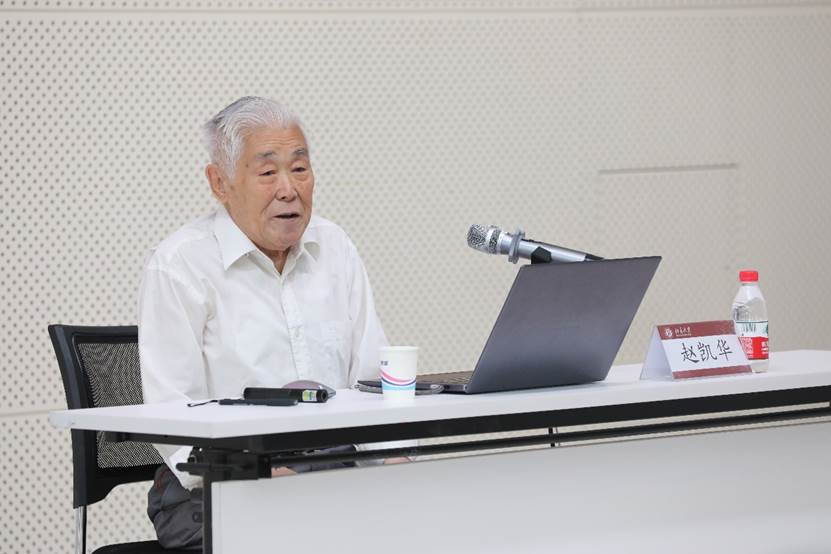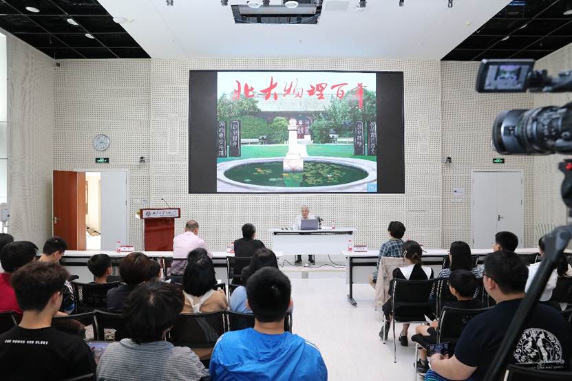 赵凯华先生自20岁从北大物理系毕业留校任教,至今从事物理教育事业70余载,亲身参与了北大物理教育的改革奋进之路。赵老先生在报告中思路清晰、声如洪钟,生动地向大家讲述了欧冠官方网站物理学发展的几个重大阶段,有初期成立时的艰难探索与学习借鉴,有战火时期的西南联大与学术突破,有院系调整时期的改革创新与飞快发展,也有改革开放以来欧冠官方网站物理学科阶段创新和教育改革。赵老先生结合自己的亲身经历将北大物理的发展历程娓娓道来,一幅百年斑斓的历史画卷在欧冠官方网站师生面前徐徐展开,宣讲结束时,现场响起一阵阵热烈的掌声。