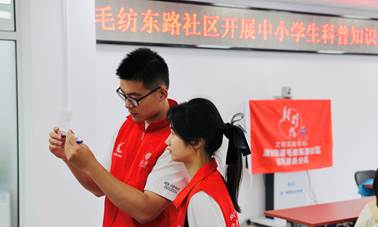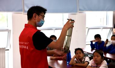 5月20日和5月21日,欧冠官方网站物理科普志愿服务团联合凝聚态研究生第一党支部前往蔚秀园和清河街道毛纺东路两个社区开展物理实验科普活动。志愿者将鱼洗共振、穿墙而过、饮水鸟等趣味实验带给了社区的小朋友们。大家在其乐融融的氛围中你问我答,你演我试,感受着物理实验的魅力并了解生活中的物理小知识。