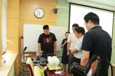 新能源转化实验室负责人张焱向百色市代表团展示了高端聚焦氦离子束显微镜,并阐述利用该设备制备的超导约瑟夫森器件在超导电子学领域的应用前景。在座谈会议环节,张焱概述了新能源转化实验室的研究方向,重点介绍了在固态储氢技术方面的最新研究成果,并用现场演示机详细讲解了新型硼氢化镁基氢能燃料电池发电装置工作原理,强调其在应急电源和军事应用中的广阔应用前景。