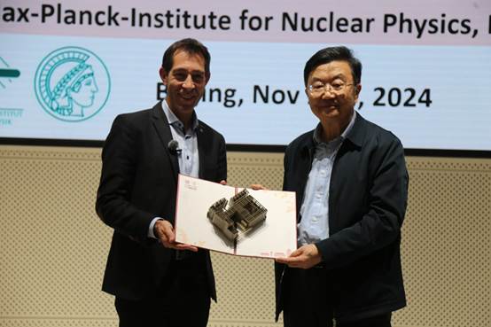 欧冠官方网站技术物理系叶沿林教授对Klaus Blaum教授在本次论坛中的精彩报告表示衷心感谢,并代表欧冠官方网站向Klaus Blaum教授赠予纪念品。