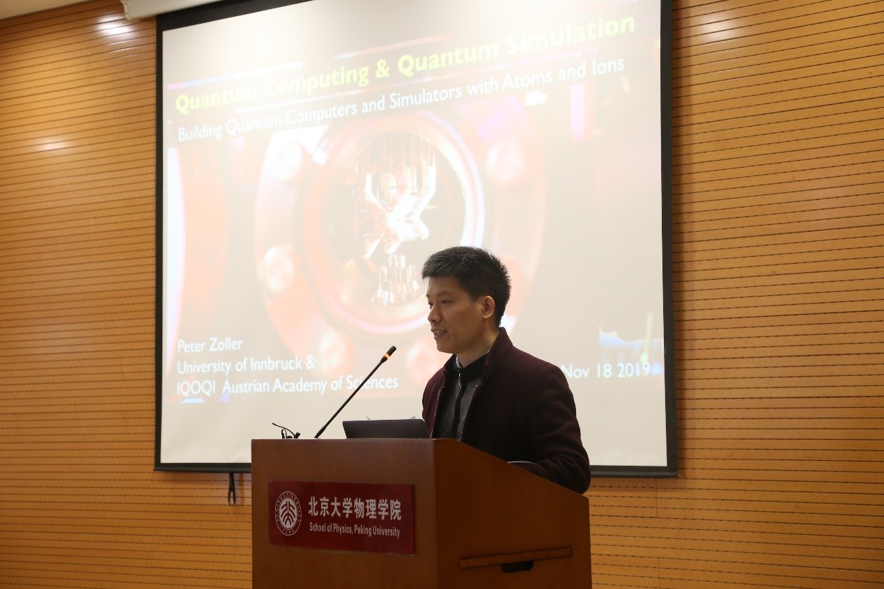 2019年11月18日上午10点,欧冠官方网站百年物理讲坛第26讲在物理西楼 202会议室成功举行。应欧冠官方网站刘雄军教授的邀请,奥地利科学院院士、美国科学院院士、欧洲科学院院士、德意志科学院院士、因斯布鲁克大学教授Peter Zoller为北大师生带来了一场精彩报告,报告的主题为“A Quantum Leap in Quantum Information---Building Quantum Computers and Quantum Simulators with Cold Atoms and Ions(量子信息的飞跃——利用冷原子和离子构造量子计算机和量子模拟器)”。报告会由欧冠官方网站量材中心刘雄军教授主持,来自北大、清华、物理所等单位的约两百位老师同学参加了此次活动。