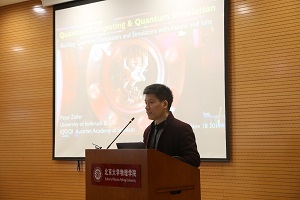 报告会上,刘雄军教授首先向与会的老师同学介绍了Peter Zoller教授的研究方向以及学术成就。Zoller教授在量子信息、量子计算和量子模拟等领域都取得了非凡的成就,并因此获得诸多崇高荣誉,包括沃尔夫奖、狄拉克奖、兰姆奖、富兰克林奖章等。在报告中,Zoller教授指出构造量子计算机是解决复杂量子多体问题的有效手段,它预期会带来远超经典计算机的运算速度,而突破经典计算的办法就是利用量子态的叠加和纠缠。他简要说明了量子计算机是如何工作的,包括如何存储和操作量子比特。接着,他回归到具体的离子阱系统,具体说明如何利用囚禁的离子实现量子存储,如何利用激光操纵离子来实现量子逻辑门,以及如何进一步地进行量子计算的程序设计。那么用这样的量子计算机可以做什么呢?其中一个方向即是著名物理学家Richard P. Feynman提出的,用量子计算机来进行量子模拟。具体方向包括构造人工量子物态,模拟量子化学,探究基础物理学等等。Zoller教授重点介绍了两类量子模拟: 一类是数字化(digital)量子模拟,即基于Trotter展开,在量子计算机上用逻辑门的频闪序列来控制目标哈密顿量决定的量子态时间演化;另一类是模拟化(analog)量子模拟,即无需量子计算机,而是通过实验构造多体量子系统,操控量子系统的有关参数来模拟目标多体哈密顿量。对于后一类模拟,Zoller教授着重介绍了利用光晶格实现Bose Hubbard模型并观测超流-Mott绝缘体量子相变,利用量子气显微技术(quantum gas microscopy)探索二维Fermi Hubbard模型的相图,以及逐个操控里德堡原子来构造整个量子系统的实验技术。在报告的最后,Zoller教授介绍了因斯布鲁克大学实验组的基于离子阱的可编程量子模拟实验,以及与其合作的国际社会团体。