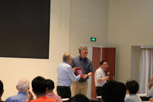 高原宁院长为von Klizting教授颁发欧冠官方网站百年物理讲坛纪念牌 |