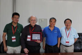 牛谦教授向Haldane教授颁发 “欧冠官方网站百年物理讲坛”纪念牌 |