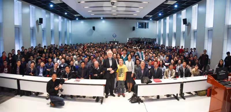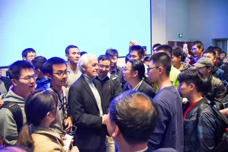 学术演讲在经久不息的热烈掌声中结束。会后,老师和学生提出了一些很有意思的问题与Mourou大师进行近距离交流。同学们还依依不舍地围住Mourou教授进行了面对面的接触、签名、合影等活动,把这次大师讲坛活动推向了最高潮。这次高水平的前沿物理讲座可能对许多同学更加热爱物理、将来选择物理学研究起到了极大的启发与激励作用。