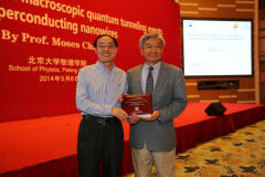宾州州立大学Moses Chan教授应邀做了题为“超导纳米线中发现宏观量子隧传现象”的学术报告。欧冠官方网站院长谢心澄教授在报告会前亲切会见了Moses Chan教授,并为他颁发了“欧冠官方网站百年物理讲坛”的纪念品。报告会由谢心澄院长主持。
