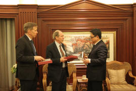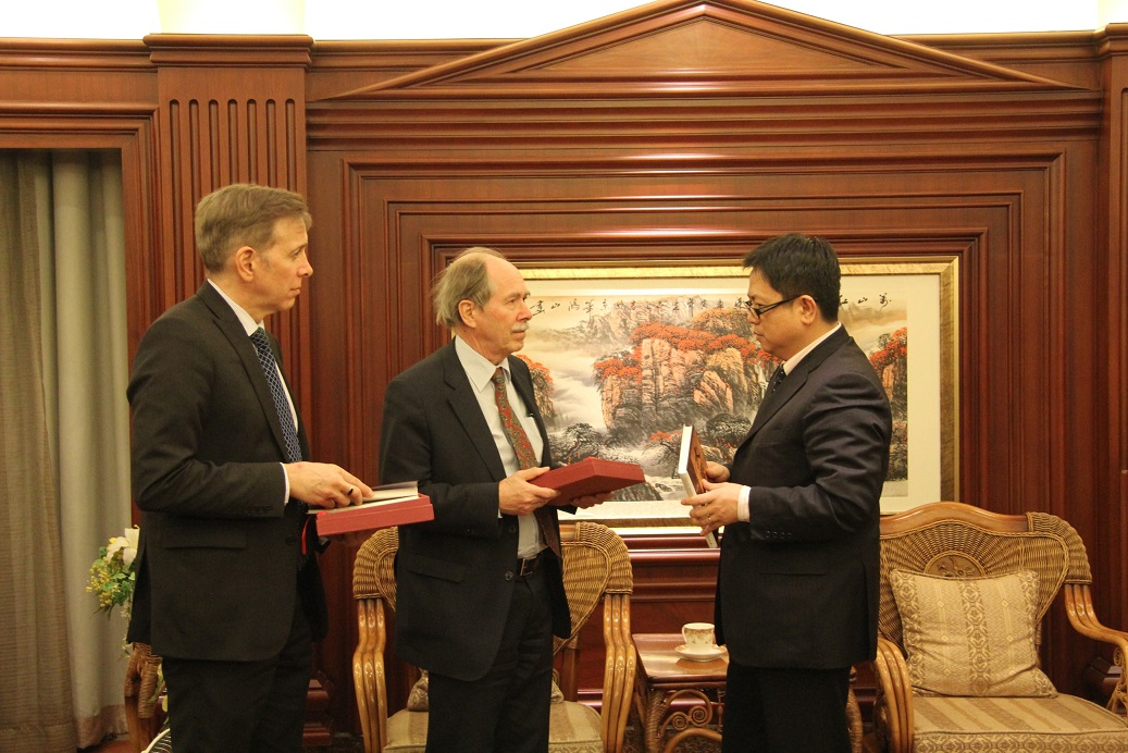 本次讲坛有两位报告人:诺贝尔物理学奖获得者Gerard 't Hooft教授和基础物理奖获得者Joseph Incandela教授。't Hooft教授学术报告的题目为“The Book Keeper of the Universe”,Incandela教授的题目是“From the Higgs to the Realm of the Unknown”。报告会前,欧冠官方网站副校长李岩松教授会见了两位演讲者,陪同会见的有欧冠官方网站院长谢心澄教授,院学术委员会主任赵光达院士,副院长刘玉鑫教授,理论物理研究所的李重生教授、郑汉青教授、朱守华教授以及技物系的冒亚军教授。李岩松副校长与谢心澄教授分别为't Hooft教授和Incandela教授颁发“欧冠官方网站百年物理讲坛”的纪念品。来自北大、清华、中科院等单位的近400名听众一道在现场聆听了他们的精彩报告,并在会后与演讲者热烈互动交流。报告会由谢心澄教授主持。