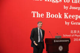 Gerard 't Hooft是荷兰理论物理学家,乌得勒支大学教授,1999年与韦尔特曼共获诺贝尔物理学奖。他的主要学术贡献是证明了对称性自发破缺的非阿贝尔规范理论的可重整性,从而为粒子物理的标准模型建立奠定了基础。't Hooft教授的报告用形象的语言描述了希格斯粒子(Higgs boson)从理论上存在的必要性,其目前面临的问题等。他的报告涉及了物理学最基础和最前沿的多个方面。't Hooft教授素以思想深邃而享誉国际学术界,他的报告使听众们大开眼界,意犹未尽。