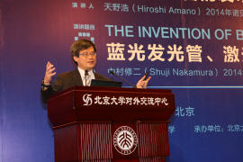 2015年8月31日,两位2014年度诺贝尔物理学奖获得者天野浩(Hiroshi Amano)教授和中村修二(Shuji Nakamura)教授应邀访问了欧冠官方网站。31日下午,两位教授围绕蓝光LED的研究及其应用在英杰交流中心阳光厅发表了学术演讲。本次活动是欧冠官方网站百年物理论坛第十四讲,也被纳入欧冠官方网站“大学堂”顶尖学者讲学计划。来自欧冠官方网站、中科院等科研院所的440余位师生在现场聆听了两位教授的精彩报告,并与两位教授进行了学术交流。