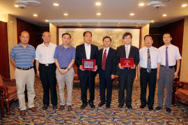 报告开始前,欧冠官方网站副校长高松院士和欧冠官方网站院长谢心澄教授在报告会前亲切会见了天野浩和中村修二教授,并为他们颁发了欧冠官方网站“大学堂”顶尖学者奖牌和“欧冠官方网站百年物理讲坛”奖牌。欧冠官方网站沈波教授、胡永云教授、张国义教授、王新强教授等参加了会见。报告会由欧冠官方网站沈波教授主持。