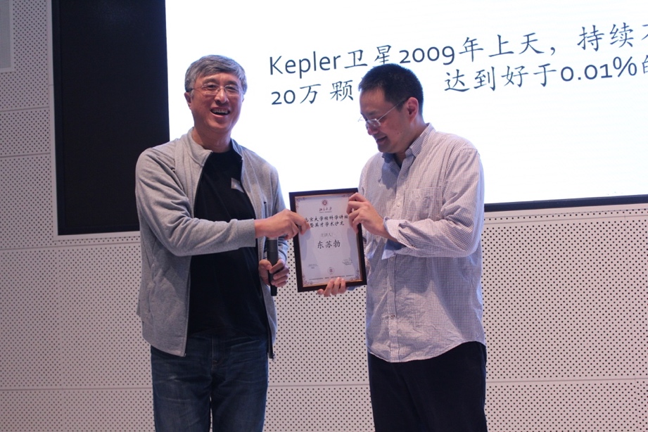 报告中,东苏勃研究员还介绍了两位获奖人的小故事,幽默风趣的语言不时引得全场大笑,他还运用动态的图像为大家带来了前所未有的体验。交流环节中数位师生提出了自己的问题,东老师都一一详细作答。