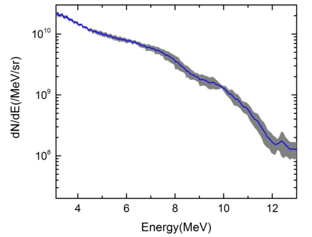 图3 五发激光加速质子束能谱的叠加图 |