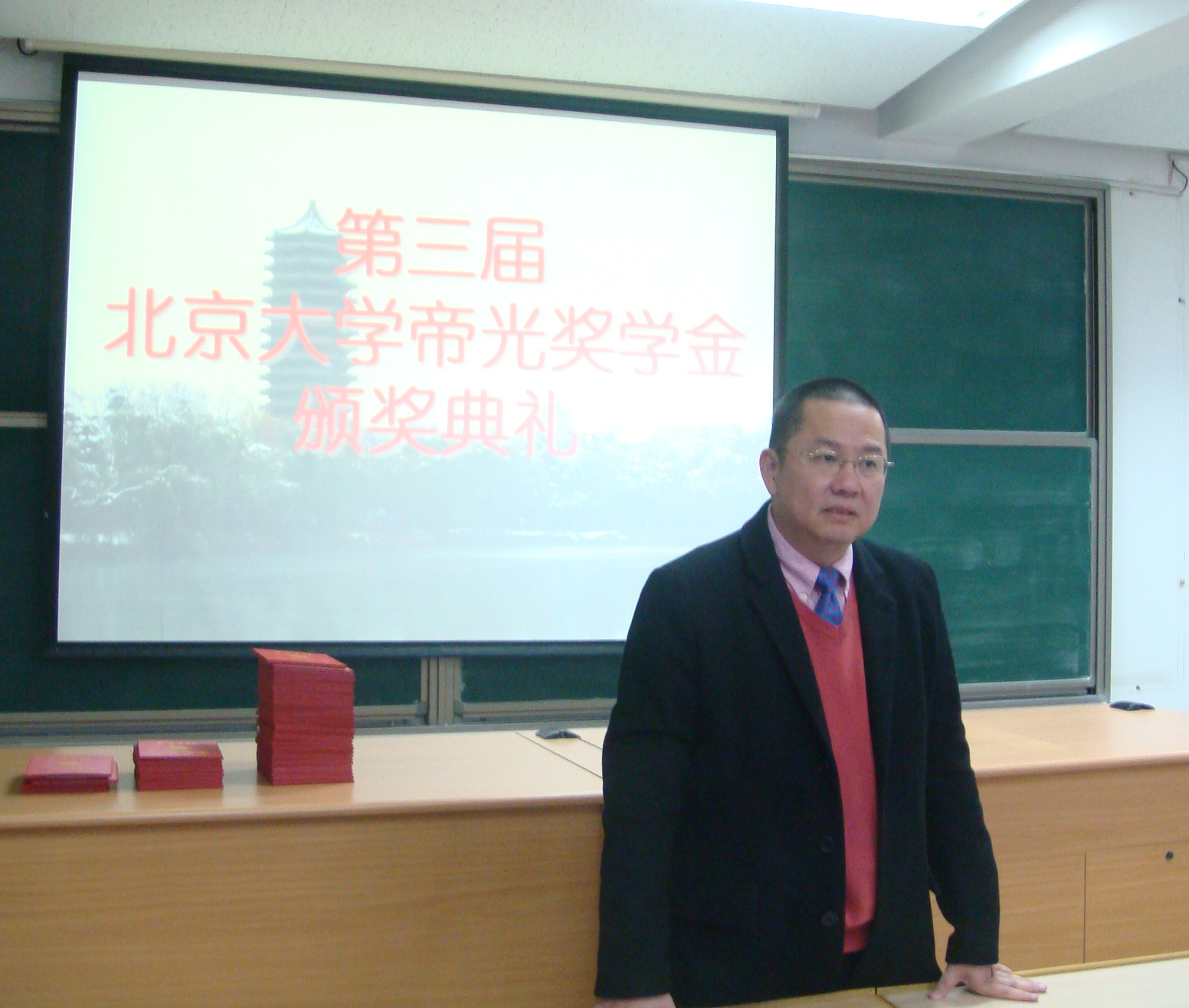 北大帝光奖学金评审委员会主席张国义教授首先向大家介绍了深圳帝光电子有限公司和北大帝光奖学金近几年的情况。他说深圳帝光电子有限公司( Diguang