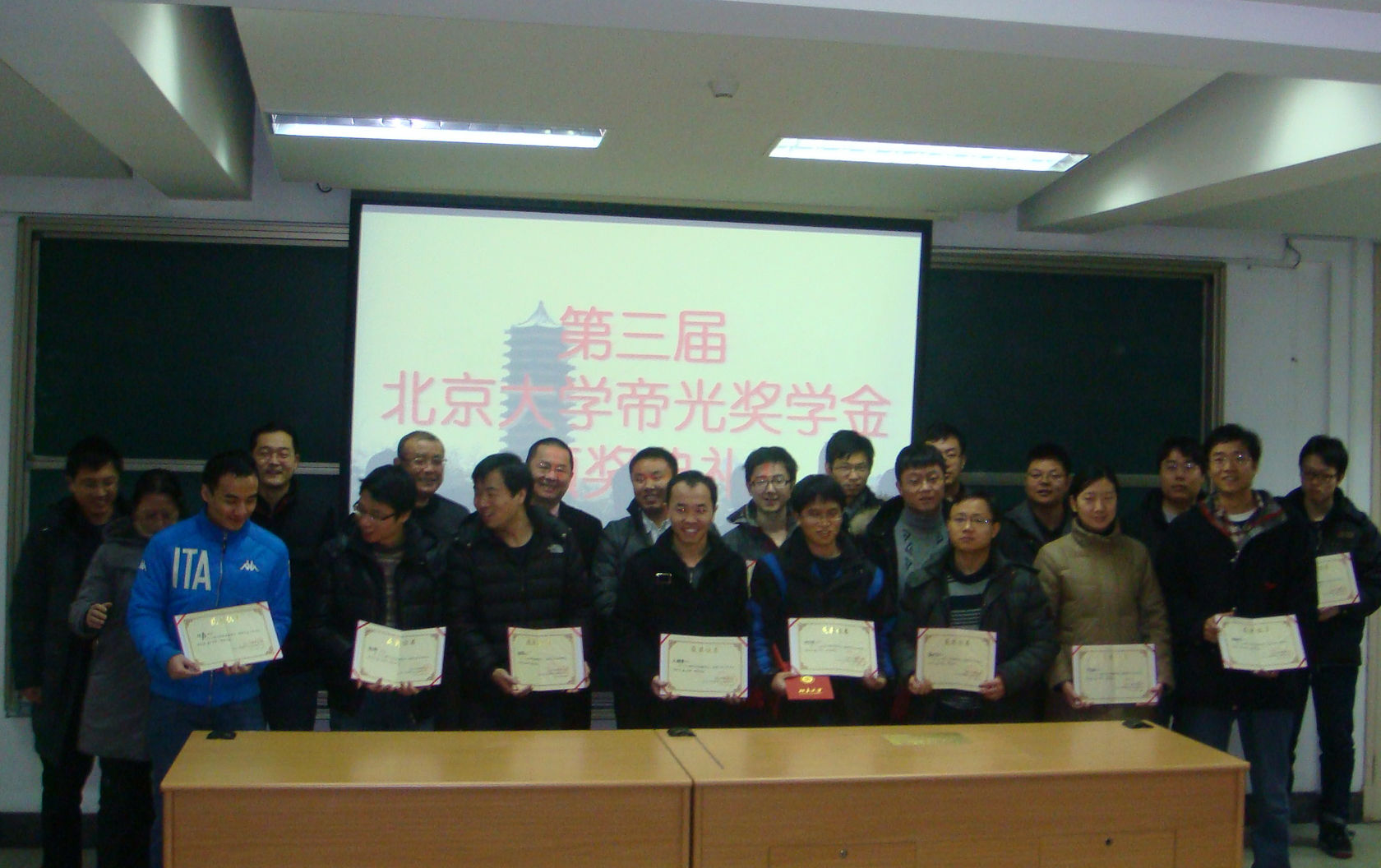 北大帝光奖学金自2007年始由宋恒毅先生捐资在欧冠官方网站物宽禁带半导体研究中心设立,深圳帝光电子有限公司每年提供人民币拾万元,以鼓励欧冠官方网站的本科生、研究生和博士后从事LED,背光源等领域的研究工作,并支持本中心的学术活动,首期期限为四年。该奖学金自设立以来已有100多位研究生获得该项奖学金,本年度共有四十三名宽禁带半导体研究中心的研究生获得了该项奖学金,其中李丁、付星星、黄呈橙和邓俊静四位同学获得一等奖,李广如等八名同学获得二等奖,另有三十一名同学获得三等奖。