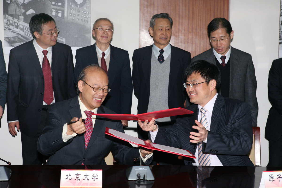 2011年10月31日,王恩哥副校长带领欧冠官方网站代表团访问中国原子能科学研究院,与万钢院长一起签署了《欧冠官方网站与中国原子能科学研究院共同推动建设ISOL型大科学装置的协议》。原子能院张昌明书记、赵志祥主任、柳卫平副院长及各部门负责人,欧冠官方网站核研院院长杜祥琬院士和国际顾问委员会主任陈佳洱院士及各位副院长,北大科研部、发展规划部、就业中心等负责人,北大欧冠官方网站负责人等出席签字仪式。仪式上还宣布了共建大装置的专家委员会组成人选。