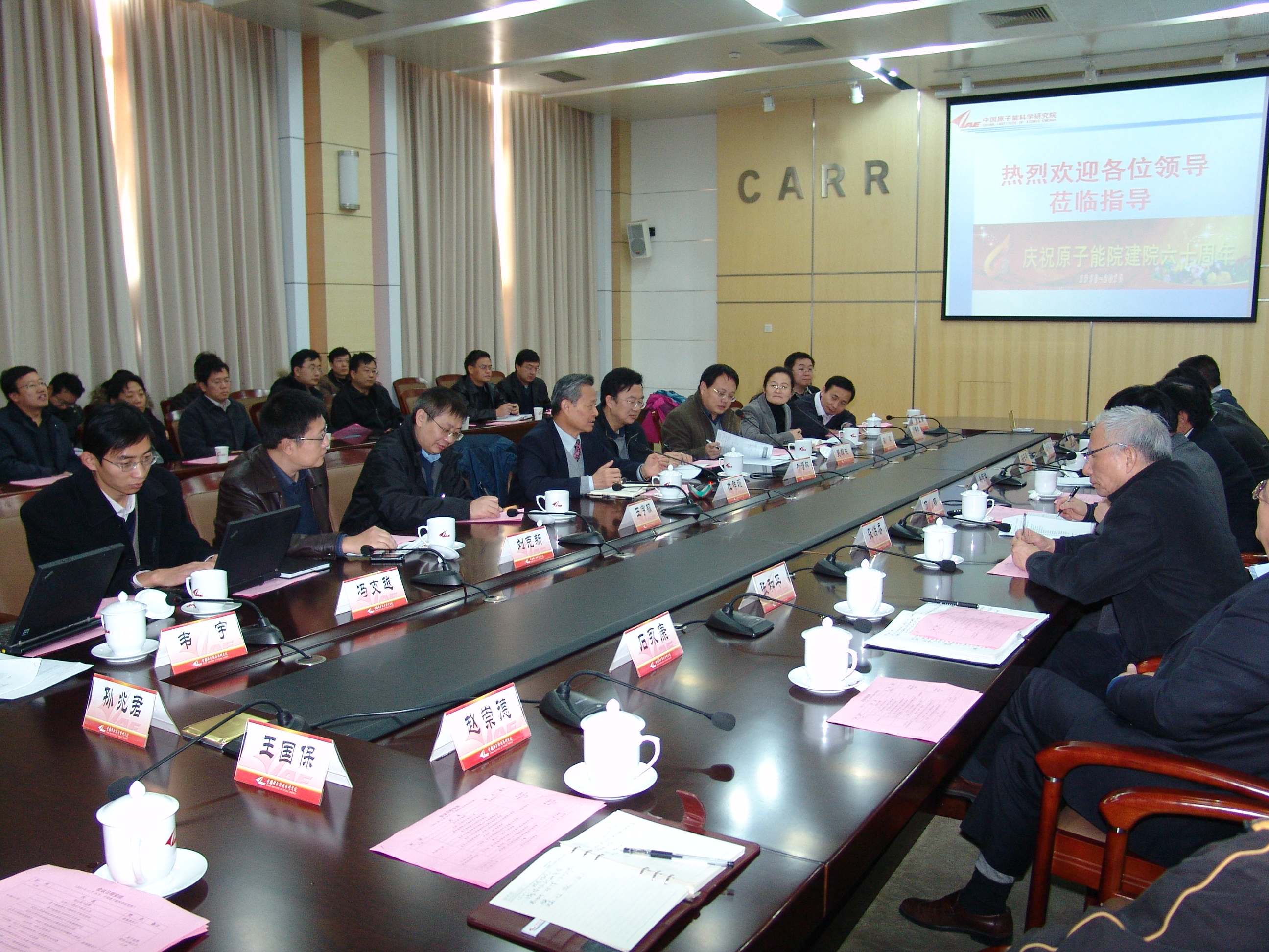 2010年11月24日,欧冠官方网站核科学与技术研究院一行十人在杜祥琬院长和叶沿林常务副院长带领下,访问了中国原子能科学研究院。欧冠官方网站发展规划部、科学科研部、人事部等管理部门的领导和欧冠官方网站部分老师也一同前往。