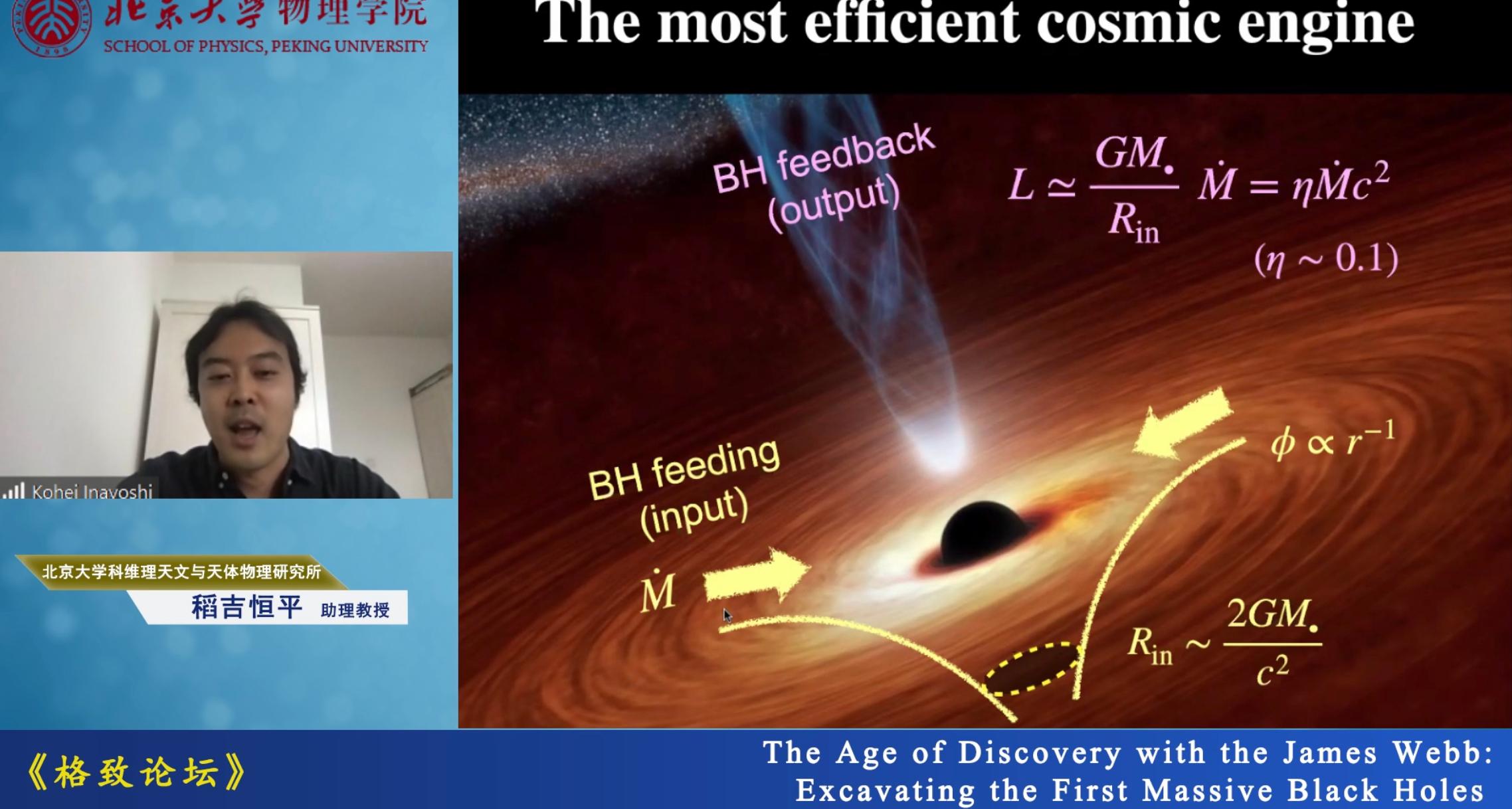 2022年4月29日,由欧冠官方网站主办的欧冠官方网站格致论坛(第九讲)在欧冠官方网站思源多功能厅成功举行。欧冠官方网站科维理天文与天体物理研究所稻吉恒平(Kohei Inayoshi)助理教授做了题为“詹姆斯韦伯望远镜开启天文发现新时代:发掘第一代大质量黑洞”(The Age of Discovery with the James Webb: Excavating the First Massive Black Holes)的学术报告。本次论坛由欧冠官方网站天文学系陈弦助理教授主持。