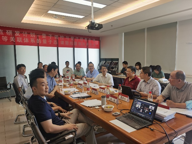 中国科学院院士、南方科技大学校长薛其坤教授(责任专家),中国科学院院士、中国科学院半导体研究所常凯研究员,中国科学院前沿科学与教育局局长苏刚教授,中国科学院大学科维理研究所所长张富春教授,中国人民大学物理学系主任卢仲毅教授,北京理工大学欧冠官方网站院长姚裕贵教授现场参会;复旦大学物理系资剑教授(责任专家),中国科学院院士、上海交通大学贾金锋教授,中国科学技术大学国际功能材料量子设计中心主任张振宇教授,南京大学超导物理与材料研究中心主任闻海虎教授,安徽大学物理与光电工程学院院长田明亮教授通过腾讯会议参会。科技部高技术中心墨宏山处长和欧冠官方网站科研部张琰副部长出席了本次会议。包括项目专家组及项目骨干成员在内30余人现场和线上参加了会议。资剑教授和薛其坤教授分别担任会议的主持人。