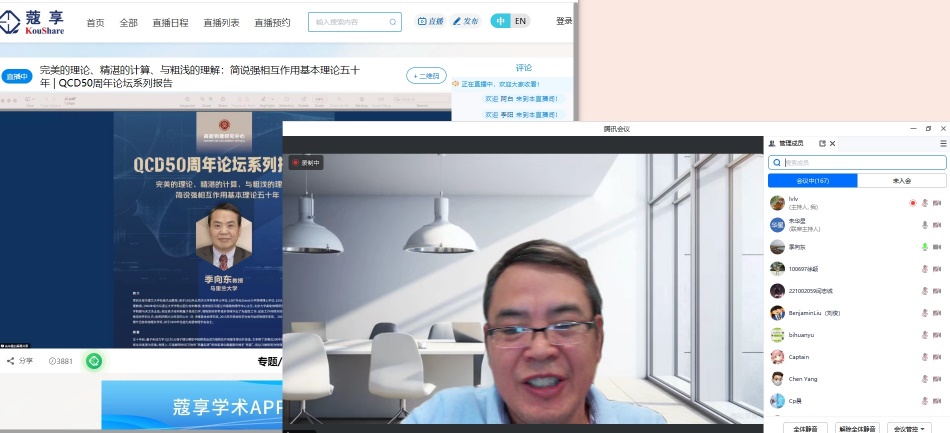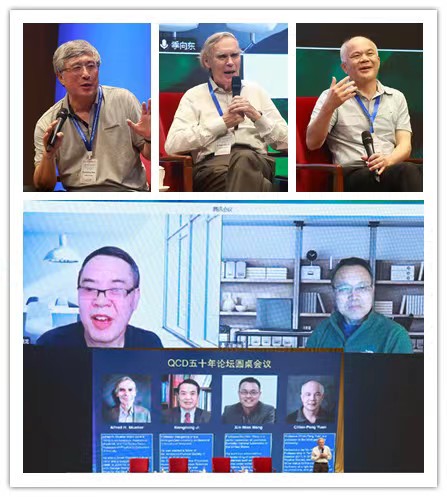 意犹未尽的报告现场随后转入圆桌讨论,由高原宁主持,邀请Mueller、Chien-Peng Yuan、季向东、王新年等嘉宾,就大家所关心的强相互作用研究中的一系列问题共同展开线上线下的交流与讨论。