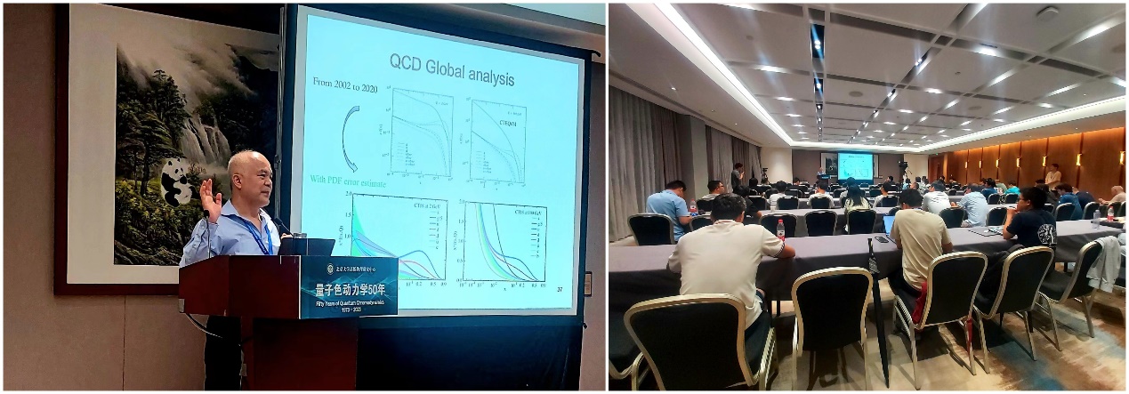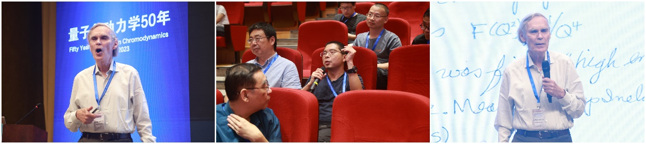 大会报告第二部分是“强子和BES物理”,来自中国科学院理论物理研究所的邹冰松院士作了题为“奇特强子态与强子结构”的报告,还有中国科学院高能物理研究所沈肖雁研究员作了题为“BESIII @ BEPCII — a QCD Facility”的报告。第三部分是“中高能核物理和格点场论”,共三个报告:复旦大学马余刚院士报告“相对论重离子碰撞和夸克胶子等离子体”;山东大学梁作堂教授报告“Orbital Angular Momentum and QCD Spin Physics in High Energy Reactions”;欧冠官方网站刘川教授报告“中国格点QCD的发展及未来”。大会报告第四部分是“微扰QCD、因子化和重味物理”,包括三个报告:北京计算科学研究中心罗民兴院士作了“微扰QCD计算:现状和未来”报告;中国科学院理论物理研究所马建平研究员作了“A brief story about QCD TMD factorization”报告;中国科学院高能物理研究所吕才典研究员作了“重味物理的QCD计算”报告。