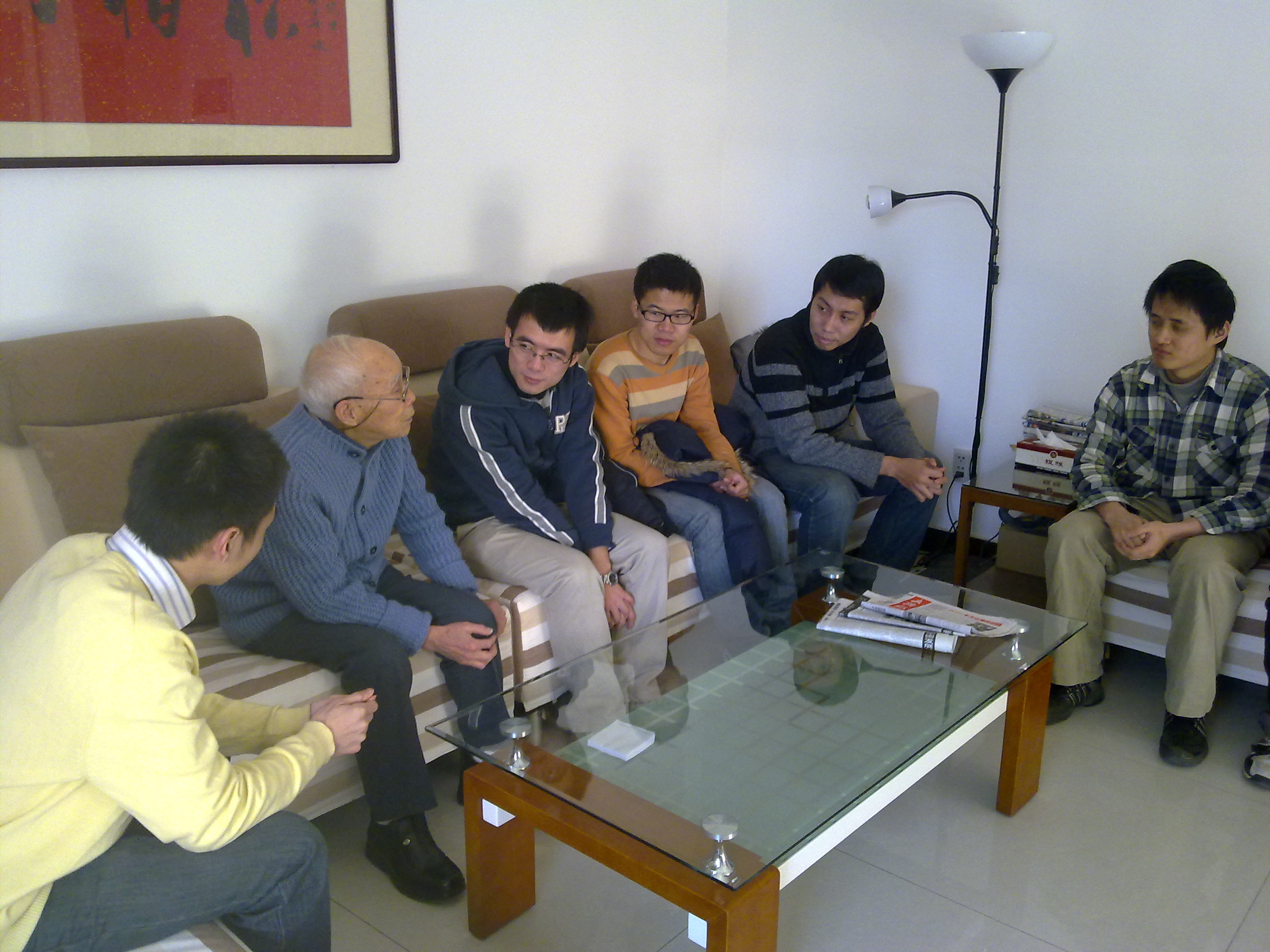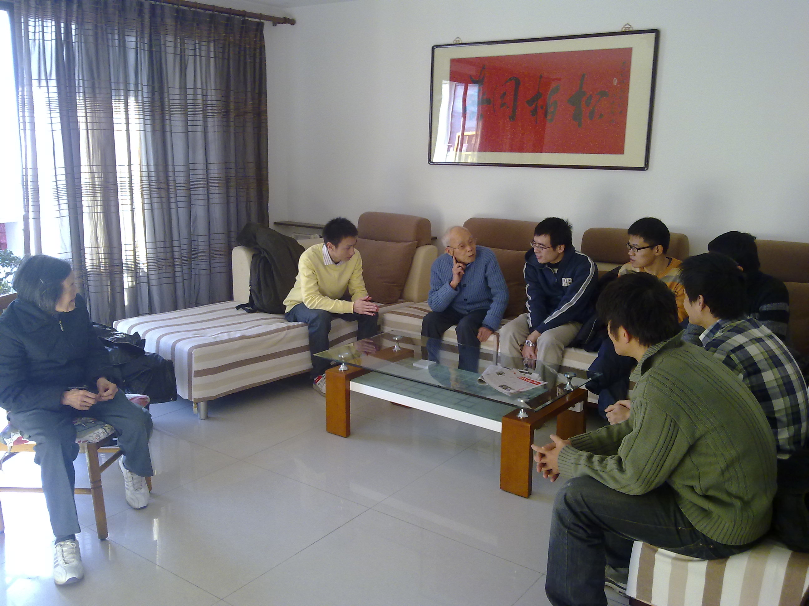 新年第一天,欧冠官方网站一行7人前往五棵松看望陈敬熊先生和常菊芳女士夫妇,向二老拜新年。一行7人都是2009-2010学年获得“陈互雄奖学金”的同学,有研究生也有本科生。