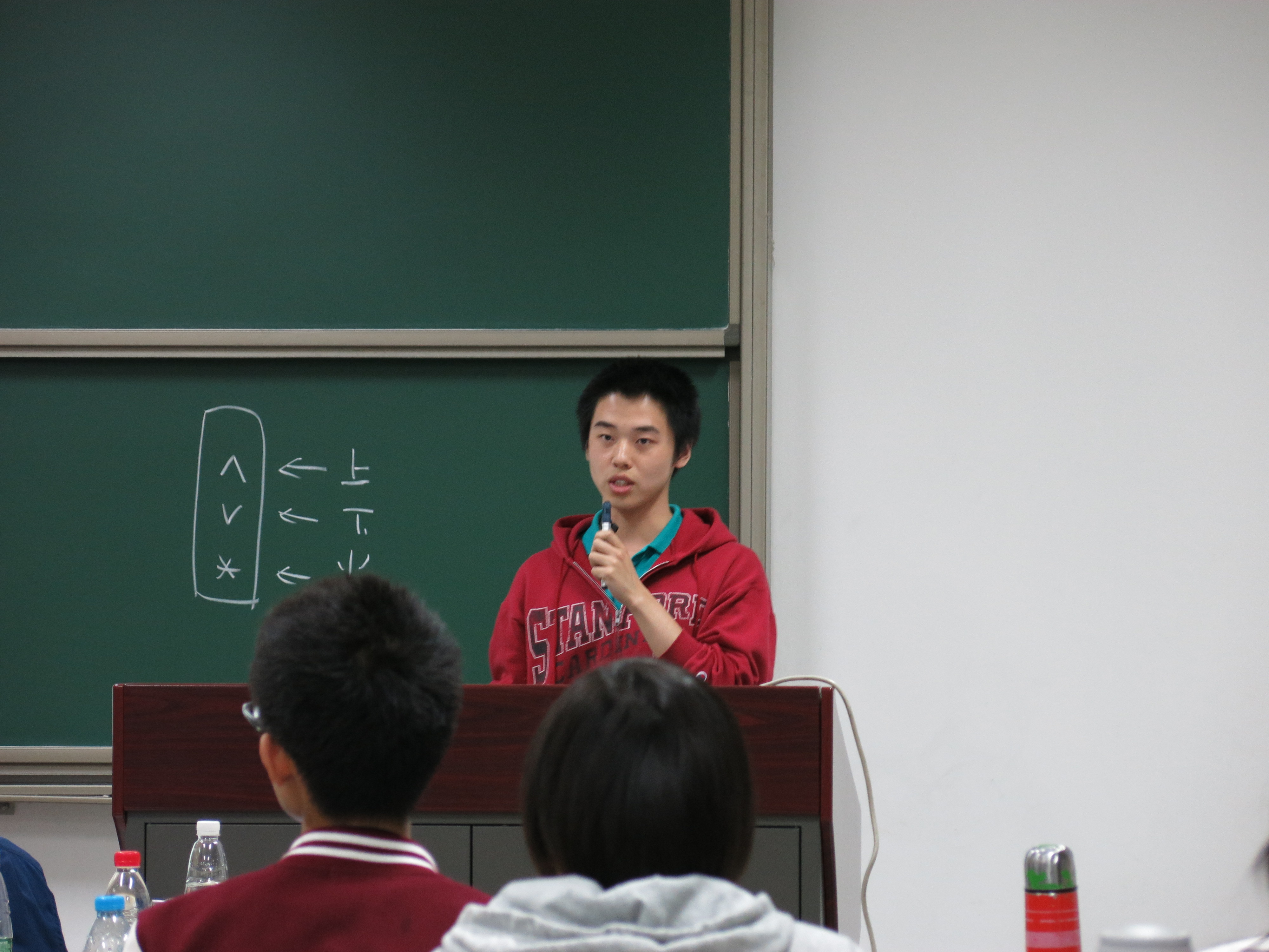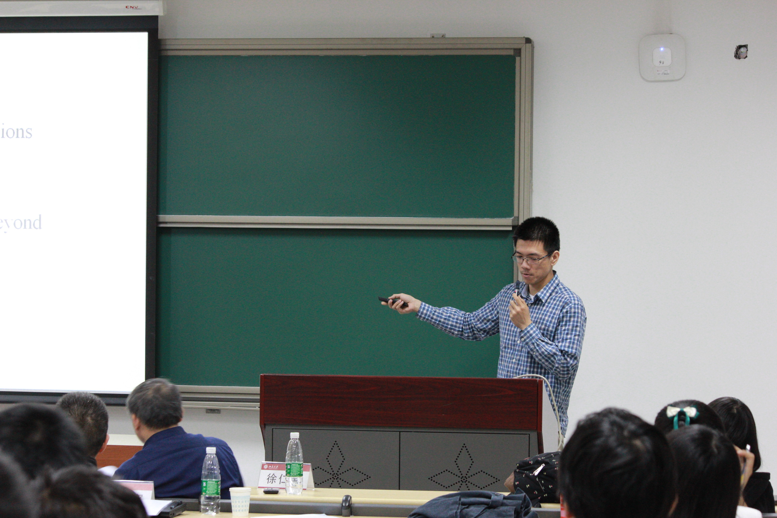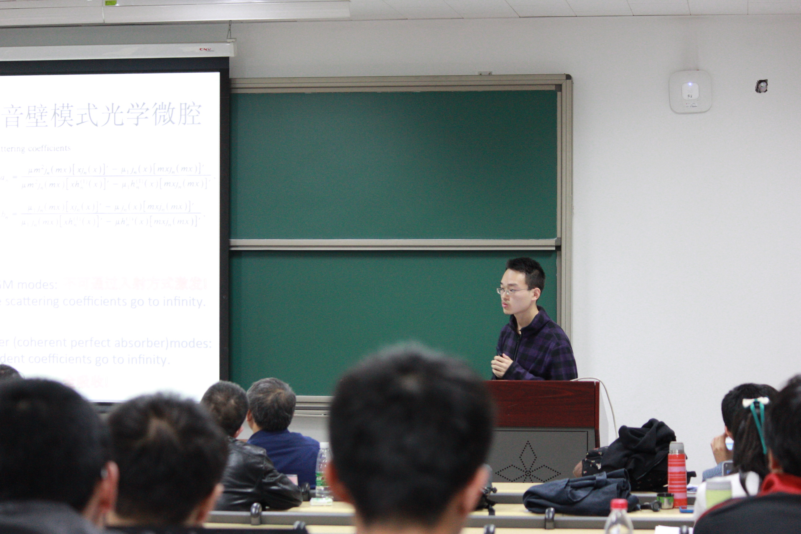 本届论坛共有17名高年级本科生报名参加,他们均是本科生科研中的佼佼者。评委会阵容强大,既有学院领导、资深教授,也有系所骨干、青年教师,他们分别是欧冠官方网站副院长刘玉鑫、院长助理徐仁新、特聘教授马伯强、电子显微镜专业实验室主任俞大鹏、现代光学所副所长彭良友、光学所教授陈建军、光学所特聘研究员肖云峰、光学所王垡。因此,论坛从一开始便受到学院师生的广泛关注,除参加评审的学生外,现场还有来自本科各年级的学生观众,以及部分研究生同学在旁观摩。