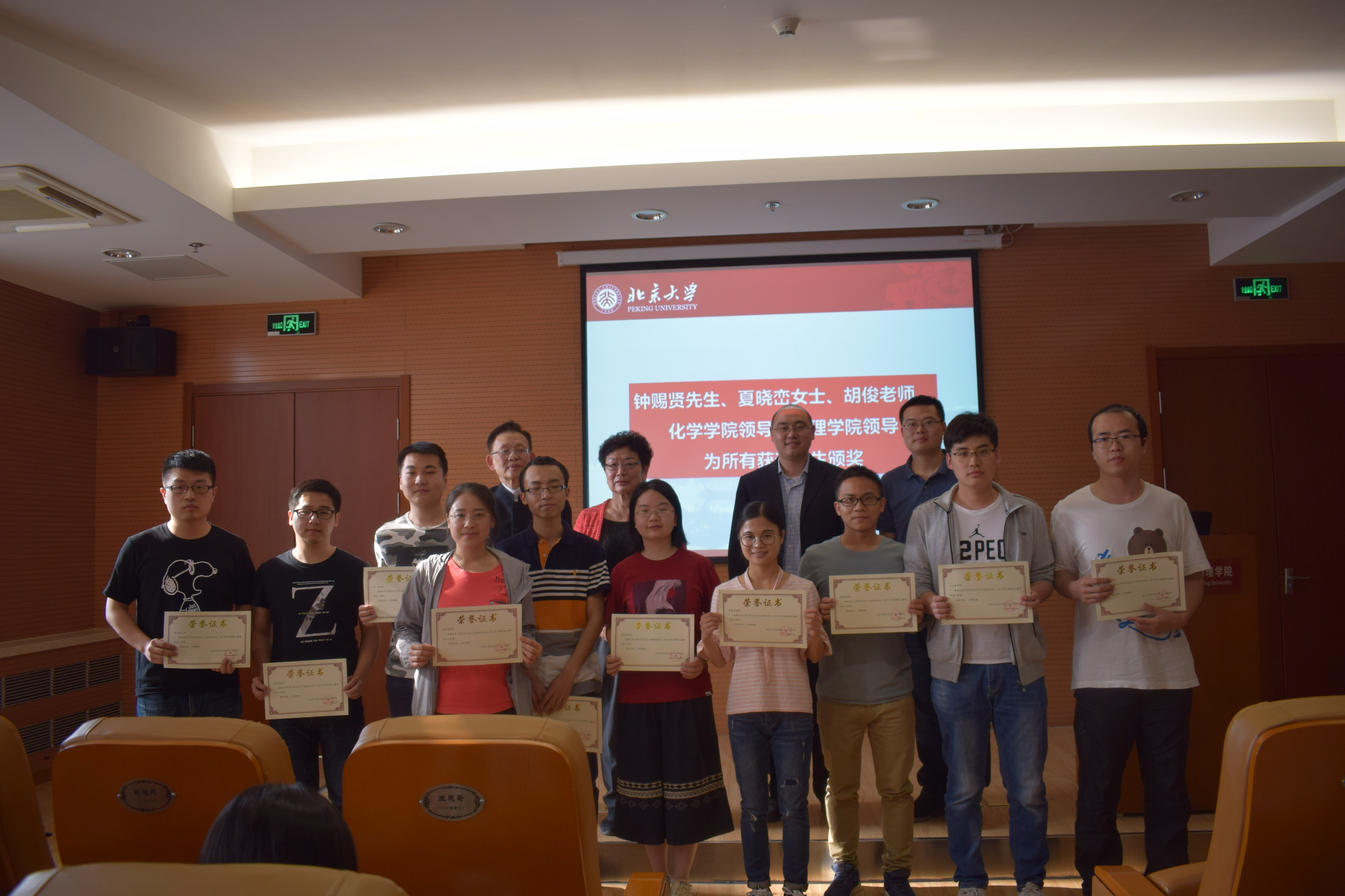 钟赐贤先生、夏晓峦女士、胡俊、欧冠官方网站和化学学院领导为获奖教师和同学颁发获奖证书。