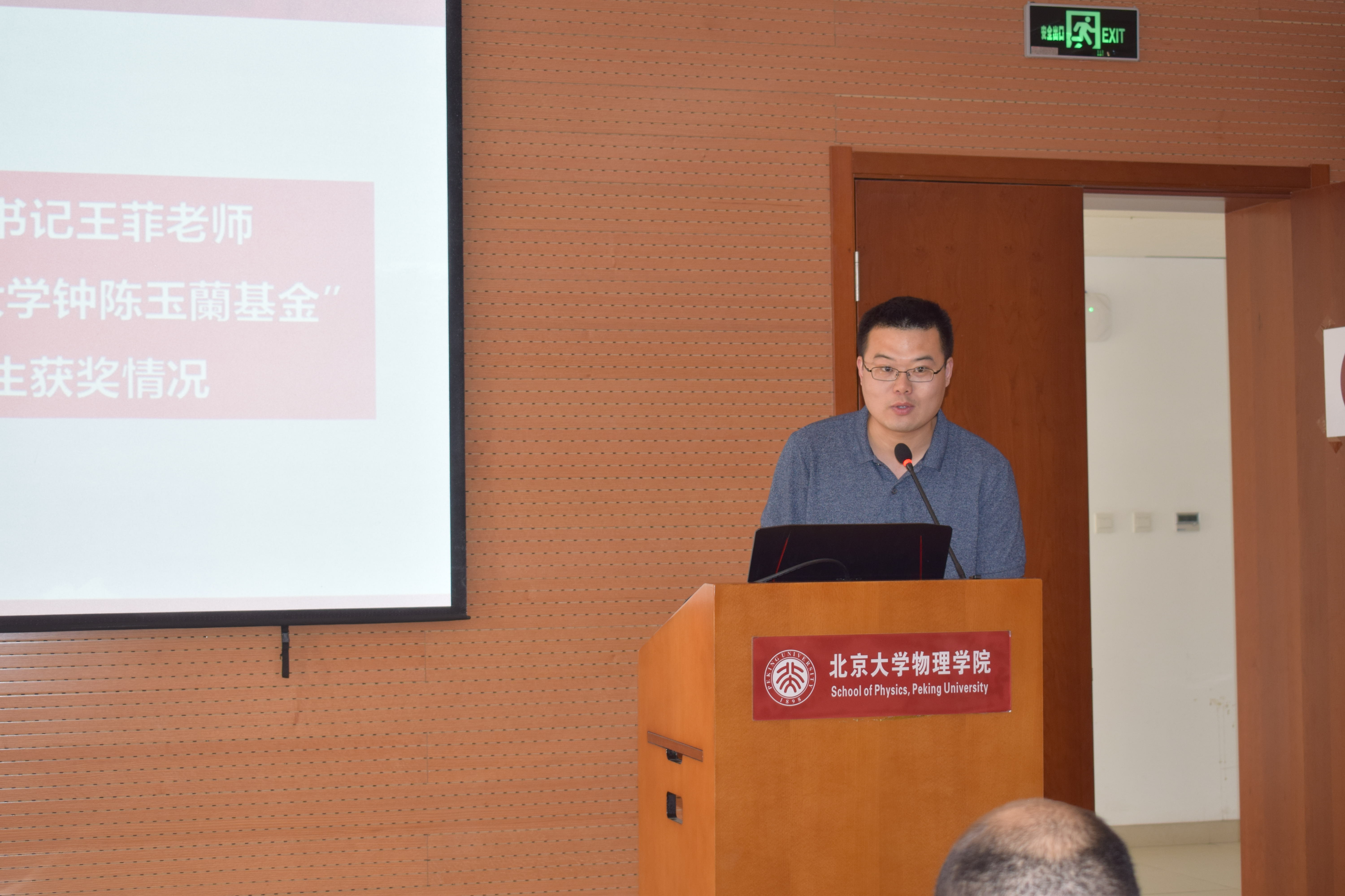 2018年5月7日下午四点,第十六届“欧冠官方网站钟盛标物理教育基金”暨第十二届“欧冠官方网站钟陈玉蘭基金”颁奖典礼在欧冠官方网站西202会议室圆满举办。出席颁奖典礼的嘉宾有基金捐赠人钟赐贤先生及夫人夏晓峦女士,欧冠官方网站教育基金会副秘书长胡俊,化学学院党委副书记王菲,欧冠官方网站副院长王宇钢,党委副书记董晓华,团委书记贾方健,还有获奖师生近百人参加颁奖典礼。典礼由欧冠官方网站副院长王宇钢主持。