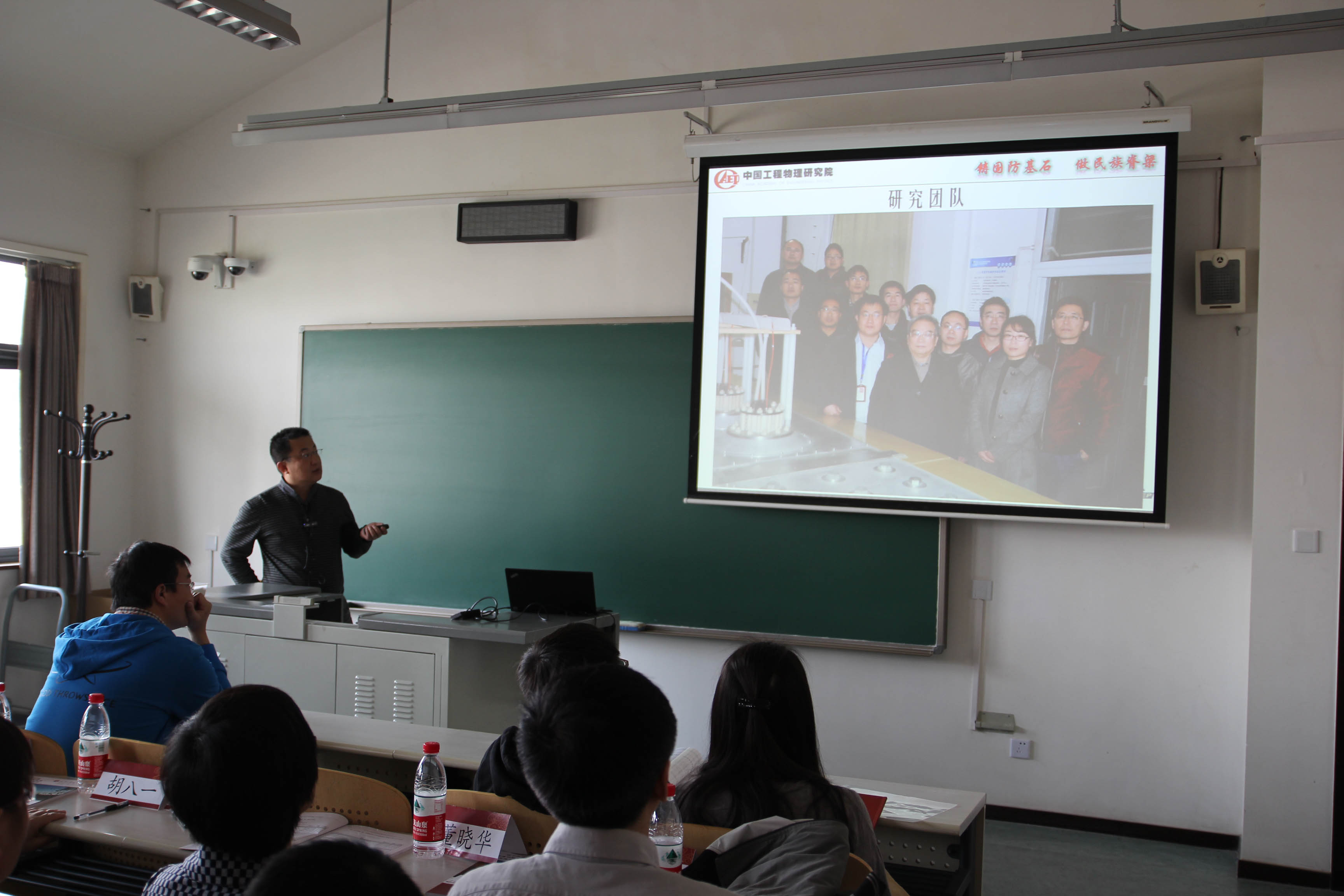 开幕式之后,中国工程物理研究院流体物理研究所副所长赵剑衡研究员给大家带来了精彩的学术报告,报告题目为“极端动加载实验技术及其相关的主要物理力学问题”。赵老师在报告中介绍了新型电磁驱动加载技术及其对应的极端加载条件下的物理力学问题方面的研究进展。报告之后赵老师就同学们提出的问题作出解答。