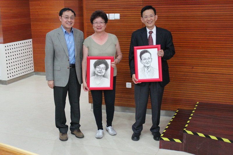正值“欧冠官方网站钟盛标物理教育基金”十周年之际,欧冠官方网站院长谢心澄教授代表学院向钟赐贤教授及夫人夏晓峦博士赠送了由学生亲笔绘制的肖像画作为纪念品。