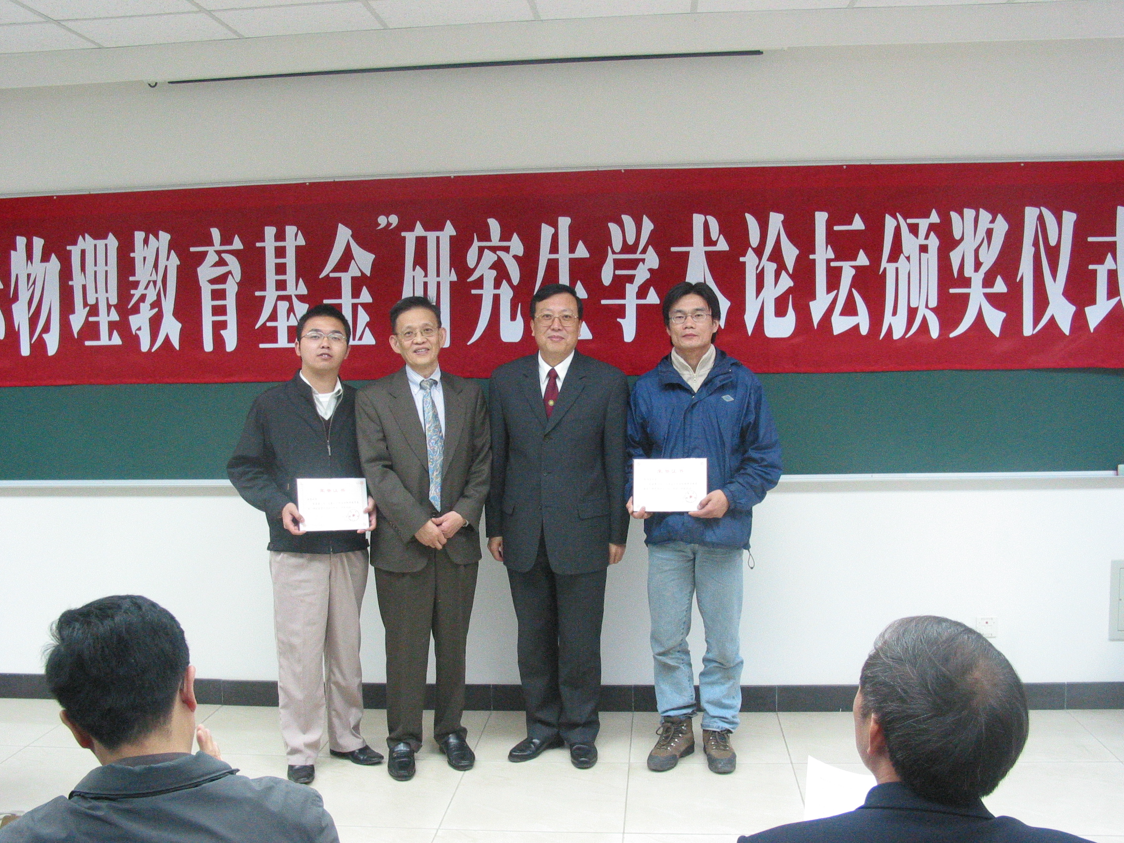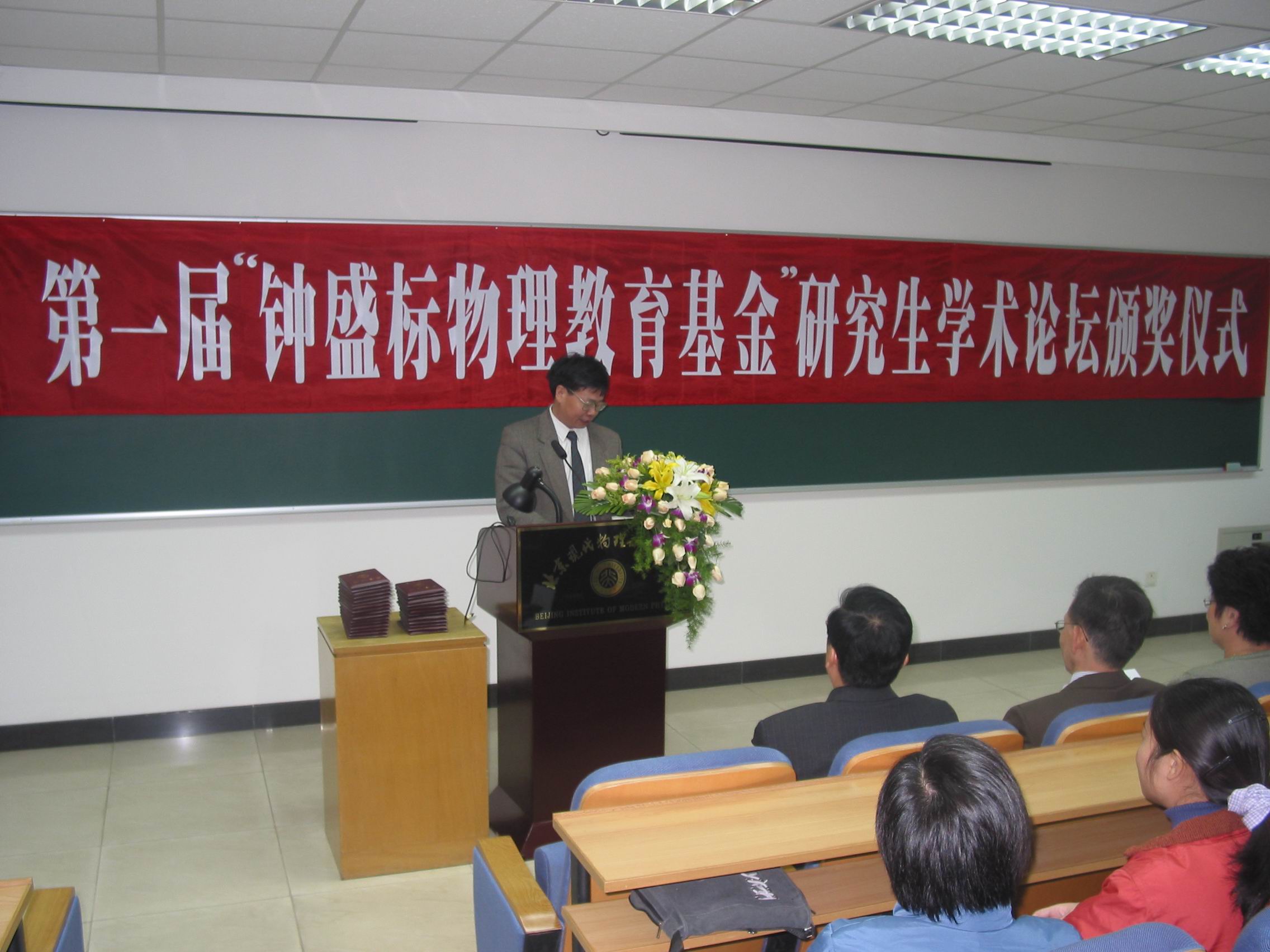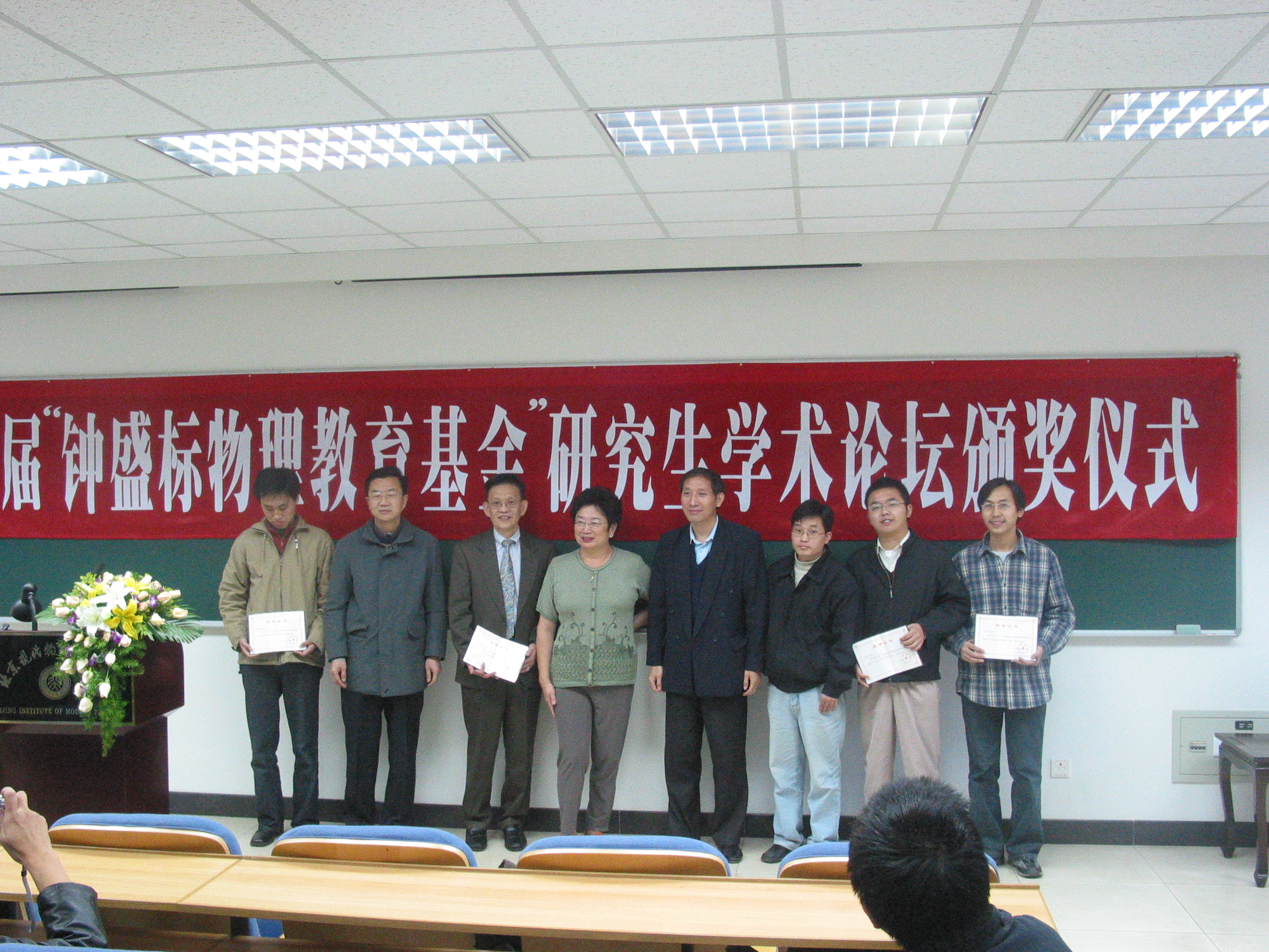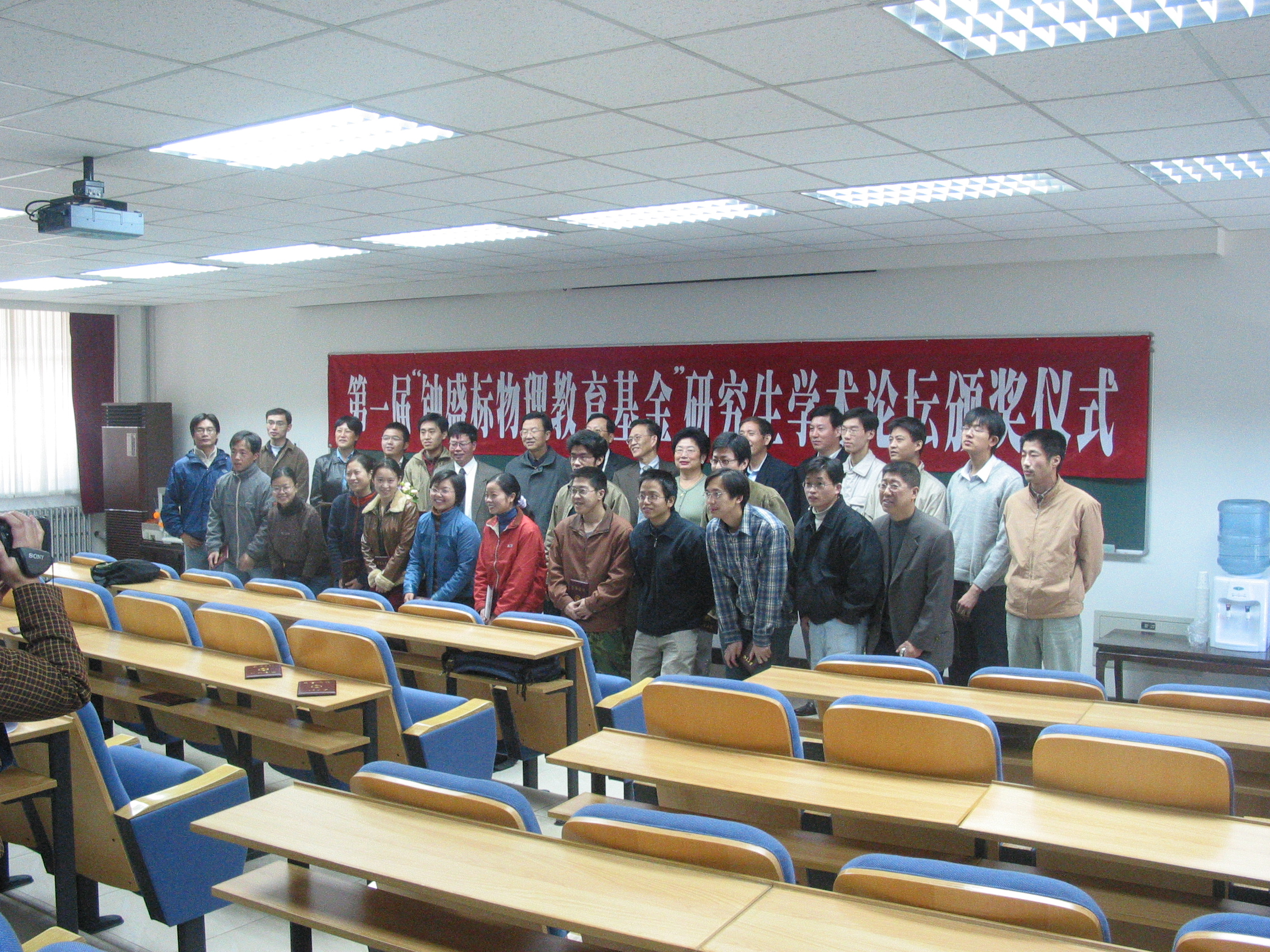 第一届“钟盛标物理教育基金”研究生学术论坛自今年三月开始筹备,学院邀请学院在校的院士为本次论坛的顾问,各个学科的学术领头人为本次论坛的评委。学院委托研究生会在学院主页作了充分宣传,我院研究生踊跃参与,五十三位研究生提交了论文。四月SARS疫情严重之后,我们暂时推迟了论文集中答辩的时间,在此期间各项准备仍然进行。九月,论文全部上交。十月十一日第一届“钟盛标物理教育基金”研究生学术论坛正式开幕,学校研究生院对此非常重视,两位副院长张国有教授、王仰麟教授前来参加开幕式并听取两位同学的报告。经过五场二十余小时的答辩,评委们听完所有报告后反复讨论,二十一日评出本次论坛获奖名单。此次活动历时半年,总于有了圆满结果。